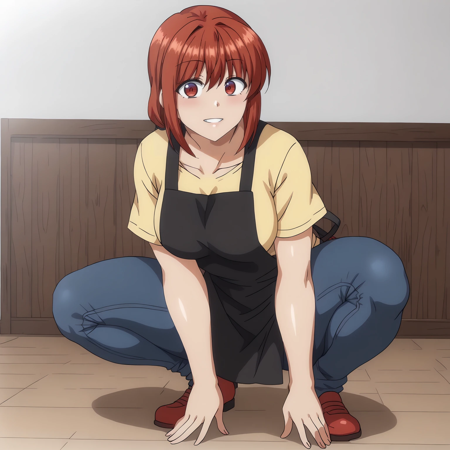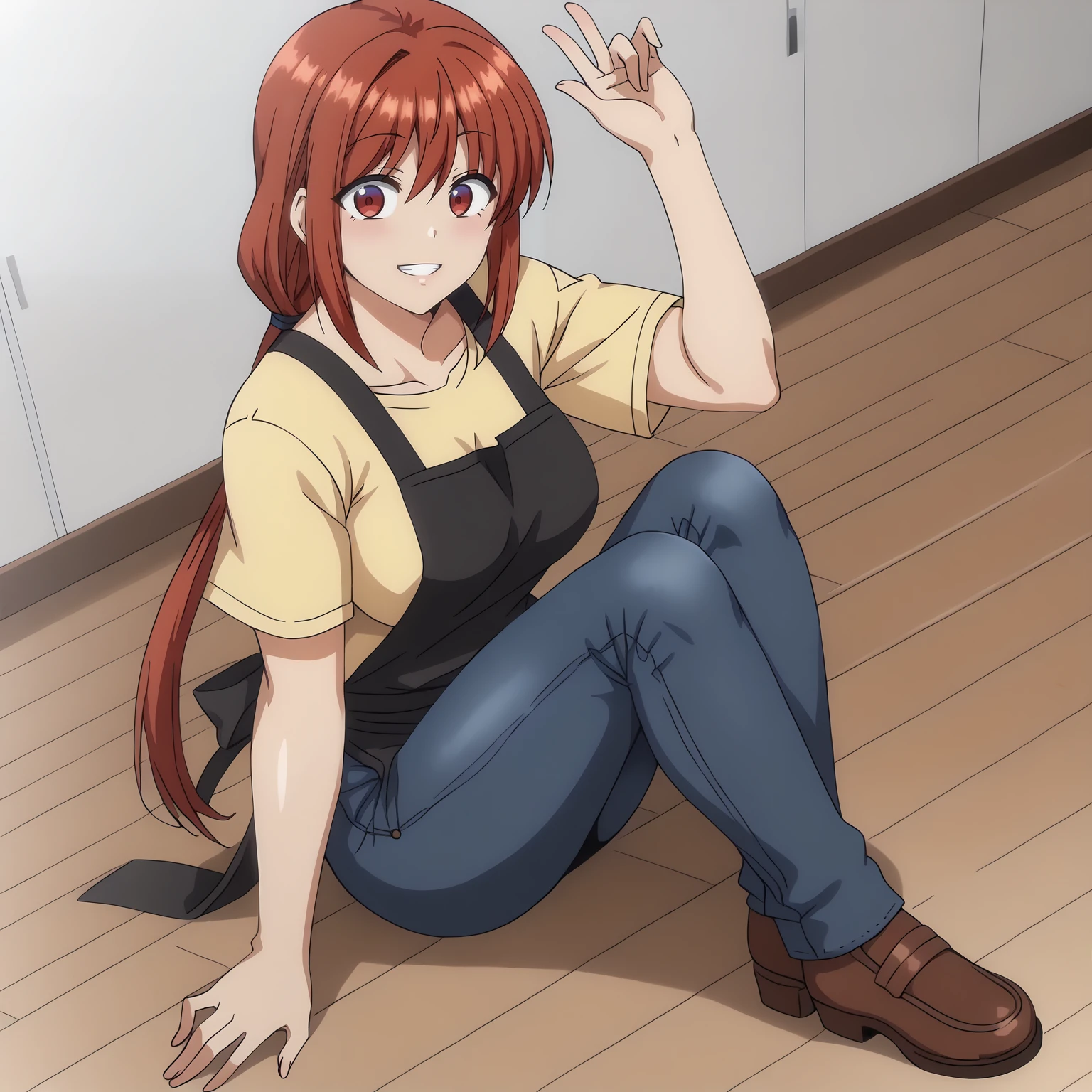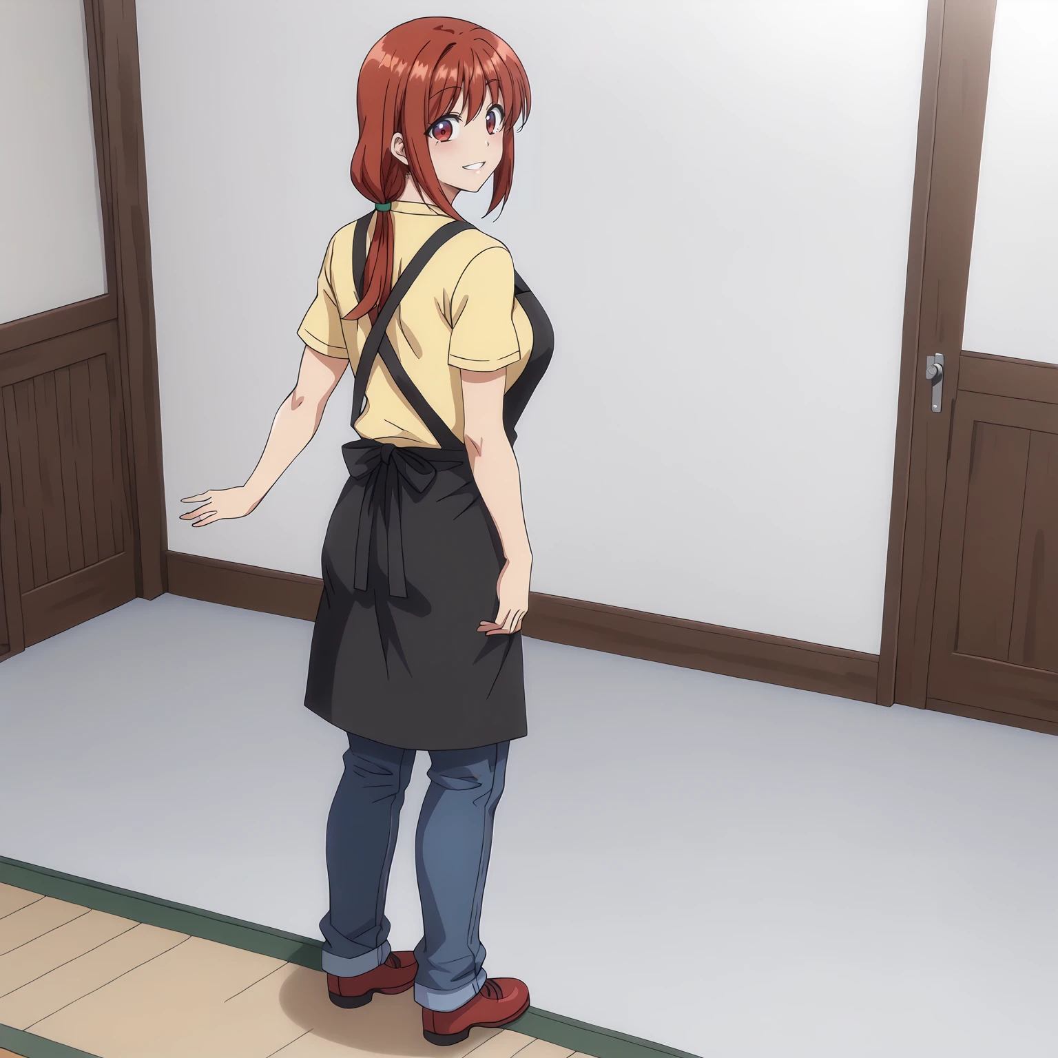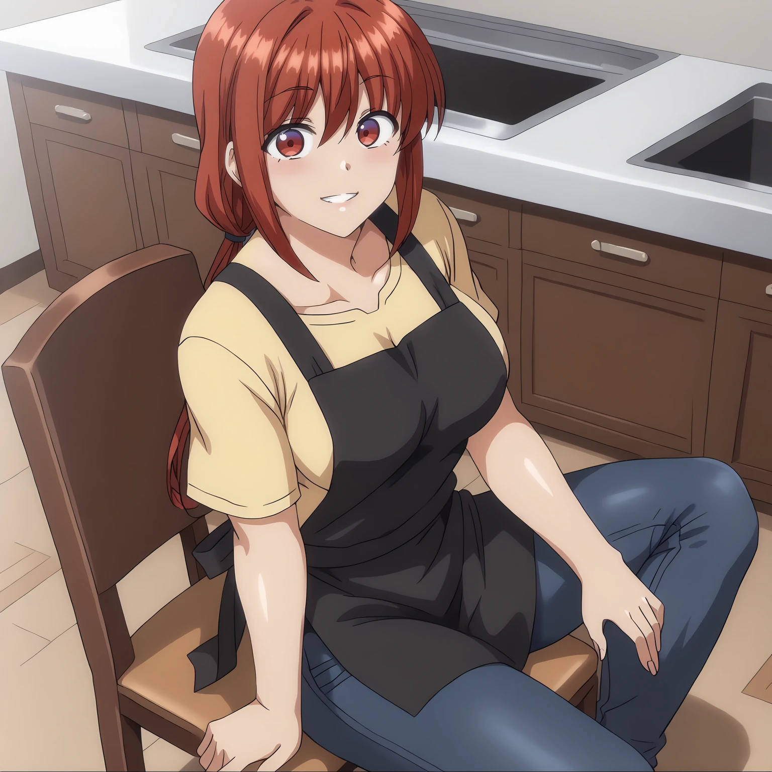 NatsumiObata,1girl,red hair,low ponytail,red eyes, large breasts,