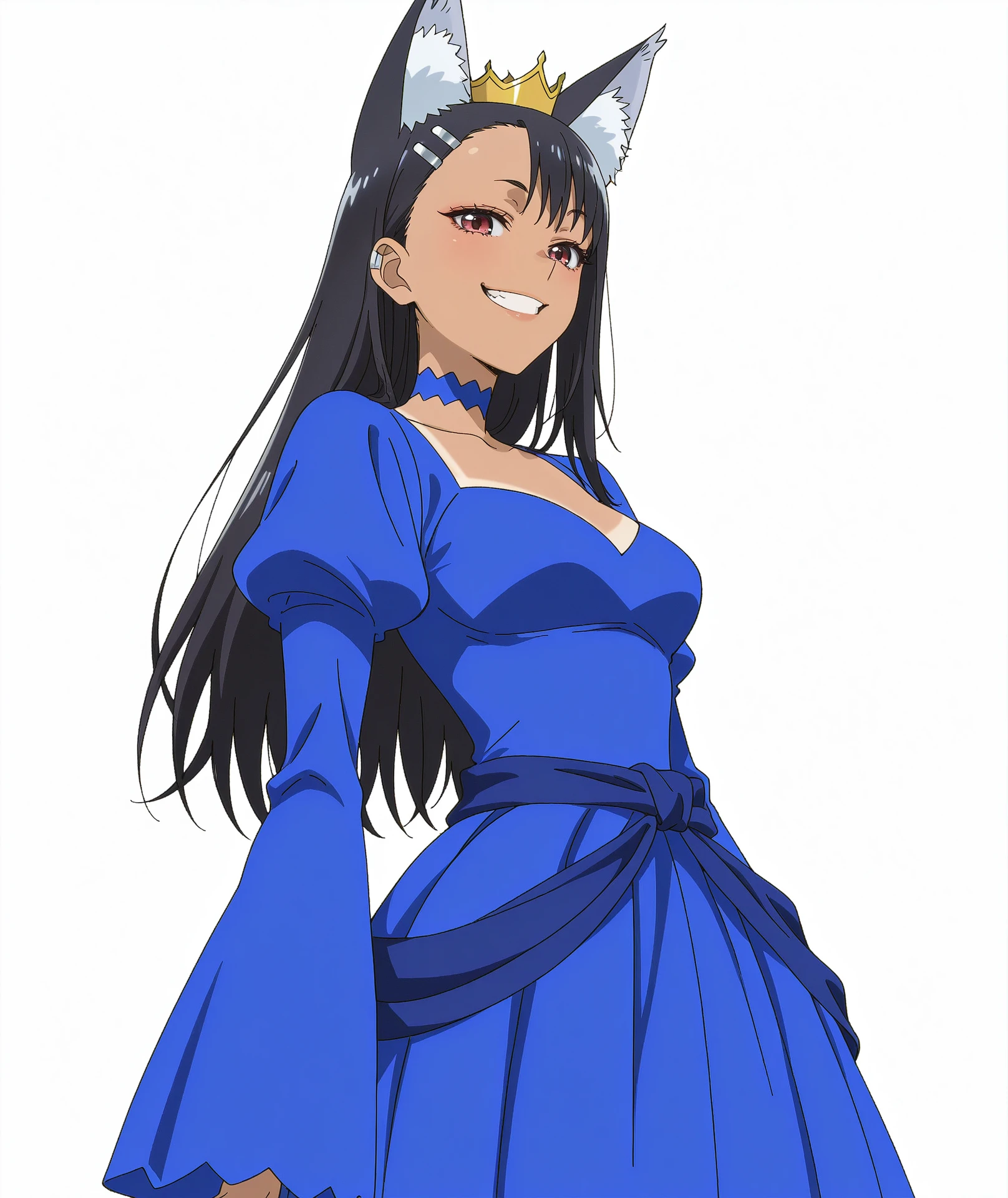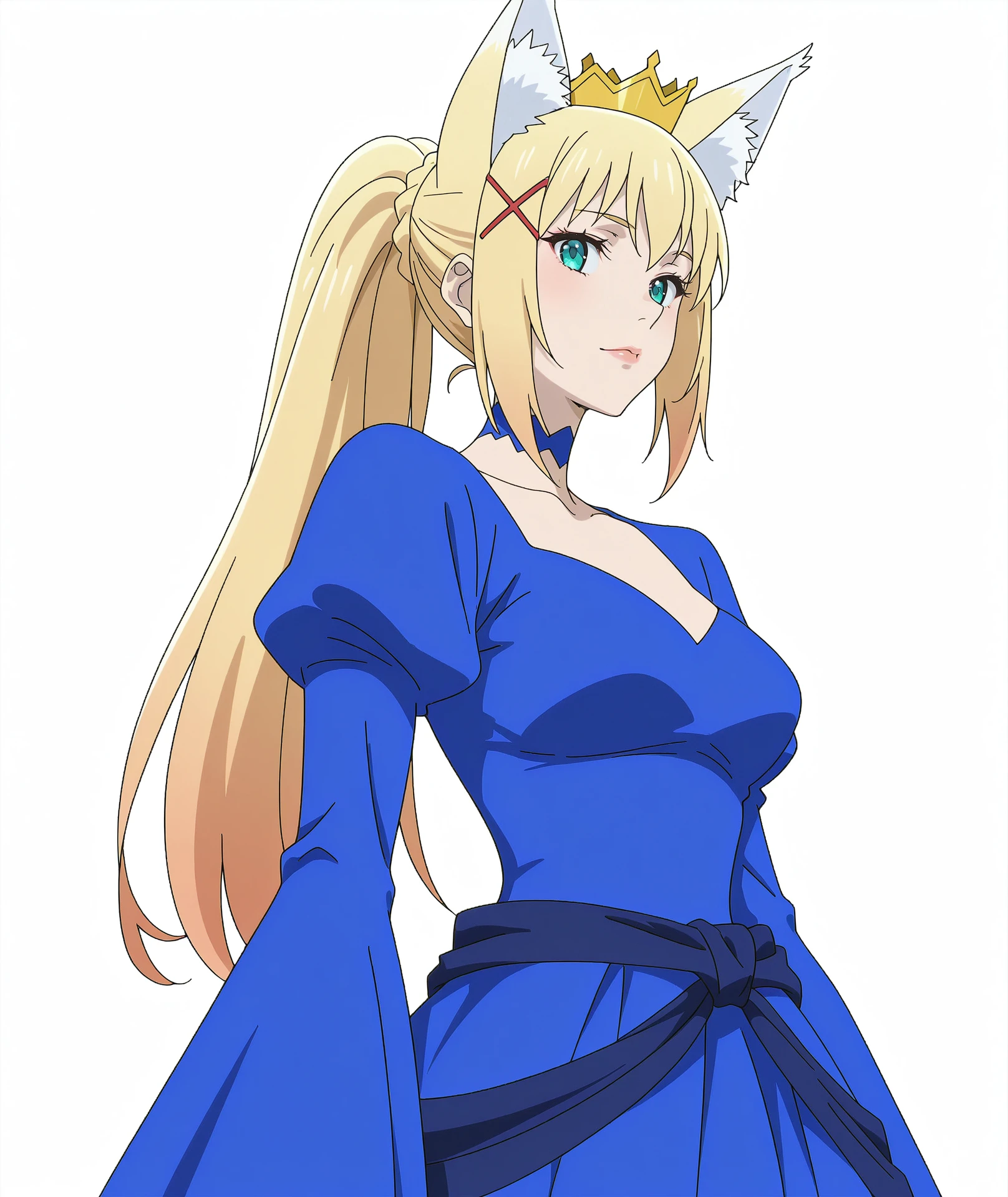 long sleeves, dress, choker, puffy sleeves, wide sleeves, sash, blue dress, juliet sleeves, blue choker, blue sash,