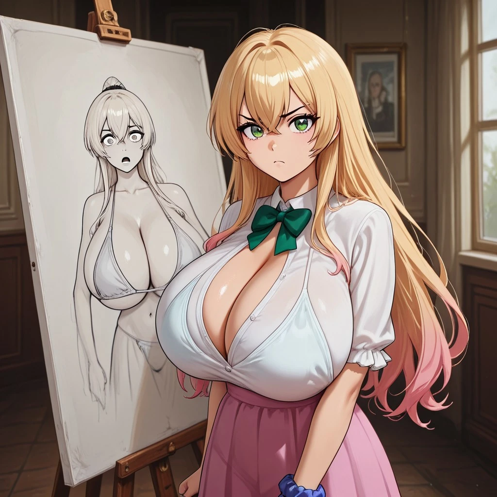a busty girl angry at your art