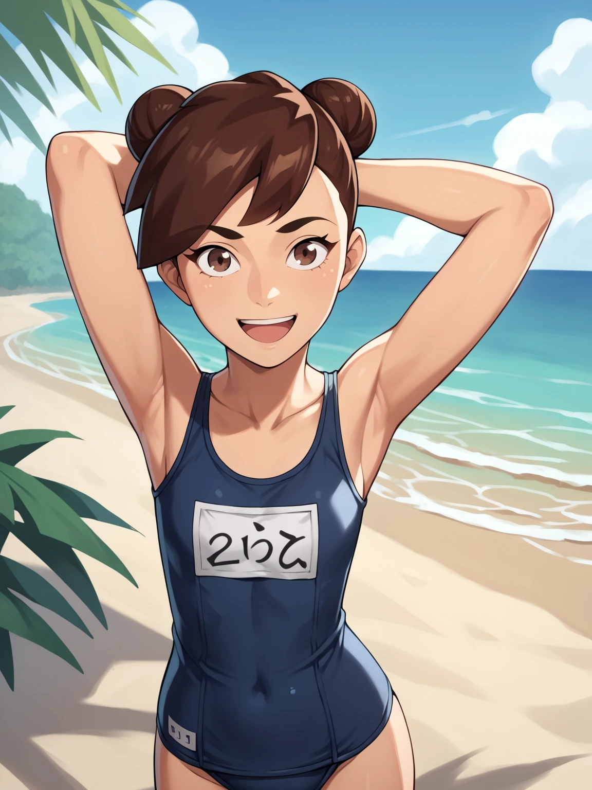 Basic prompts : 1girl, torradoza, brown hair, double hair bun, short hair, brown eyes, dark skin