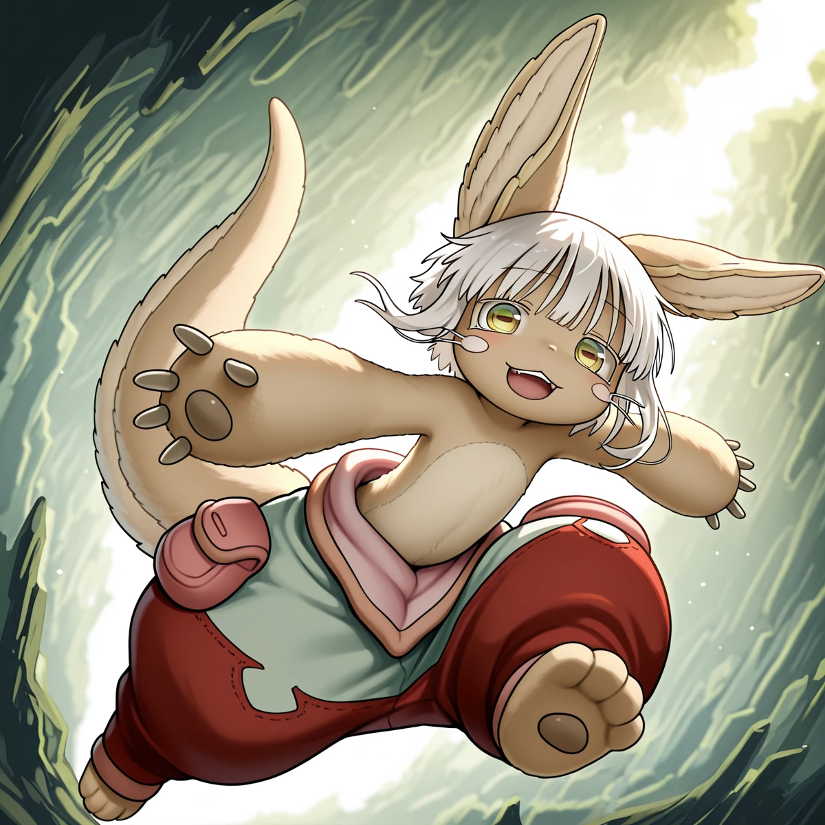 nanachi_il, animal ears, 1other, whiskers, horizontal pupils, androgynous, brown fur, yellow eyes, nanachi, nanachi (made in abyss), furry, lagomorph, rabbit ears