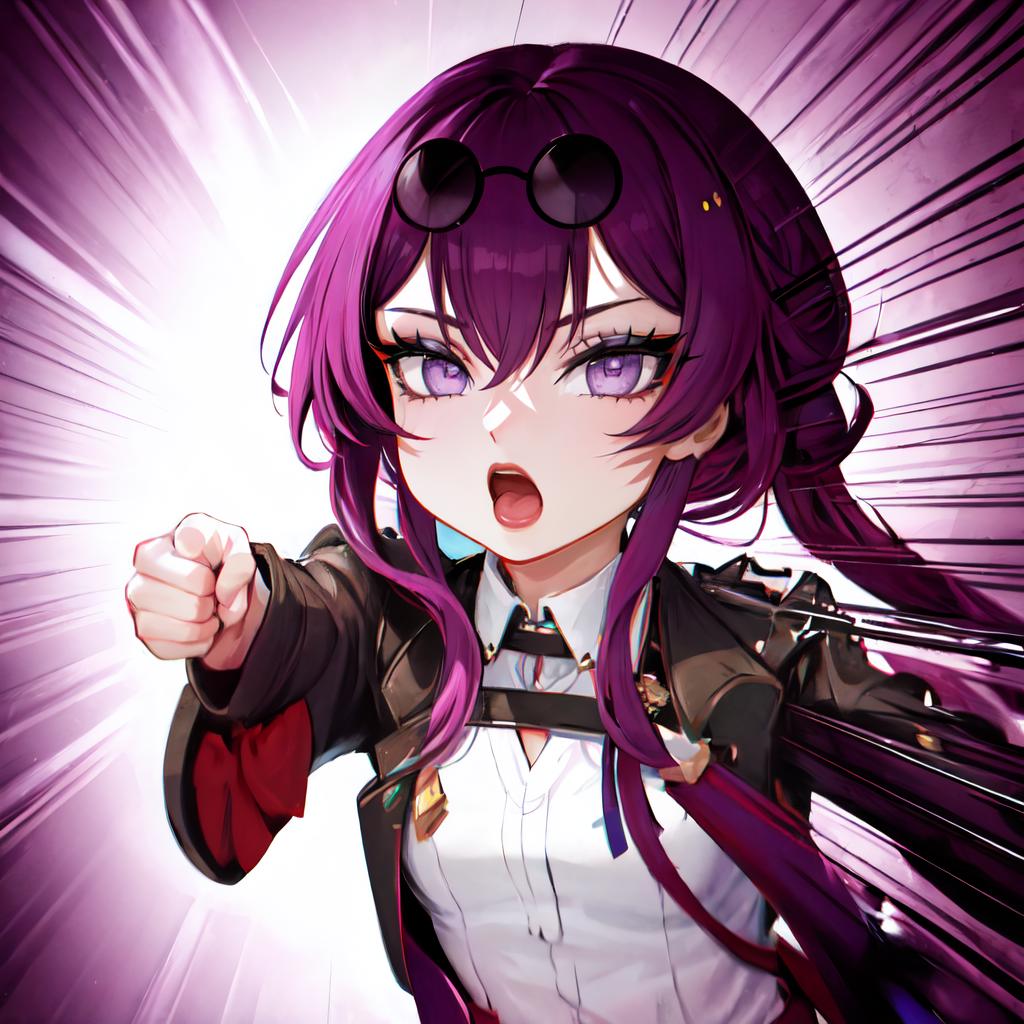 clenched hand,reaching towards viewer,anger vein,emphasis lines,open mouth,upper body,cropped torso,looking at viewer,solo,chibi,