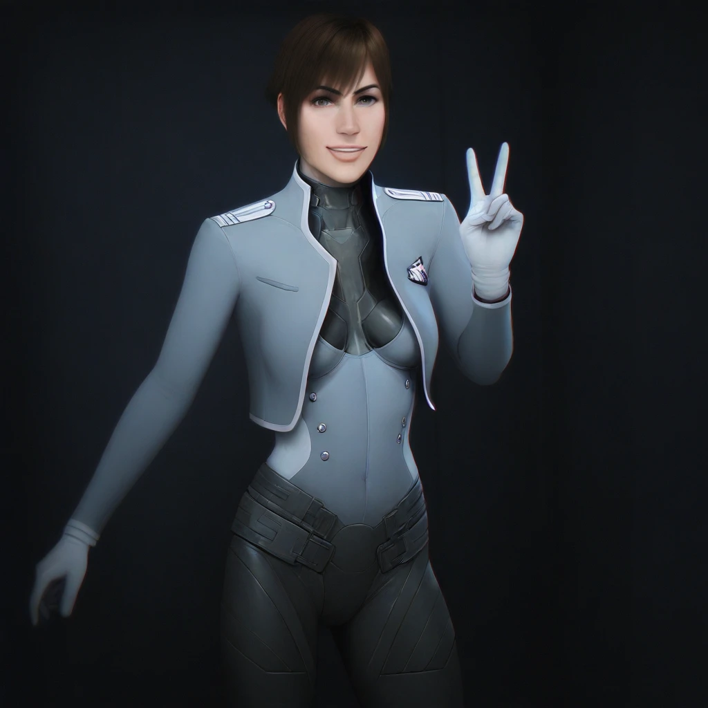 carm_sst, 1girl, short hair, brown hair, jacket, , gloves