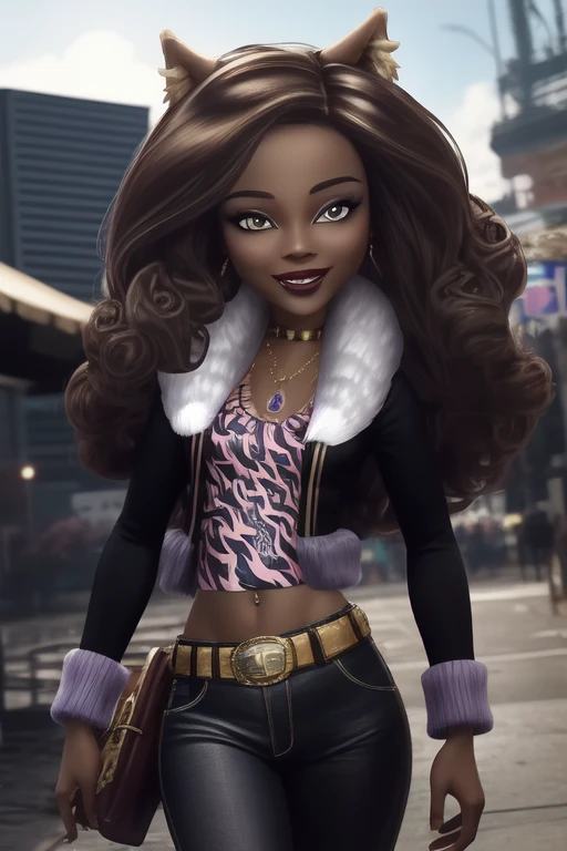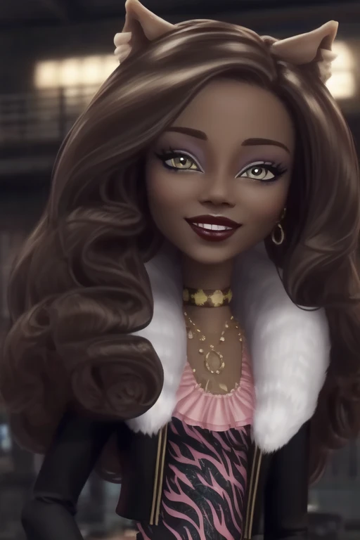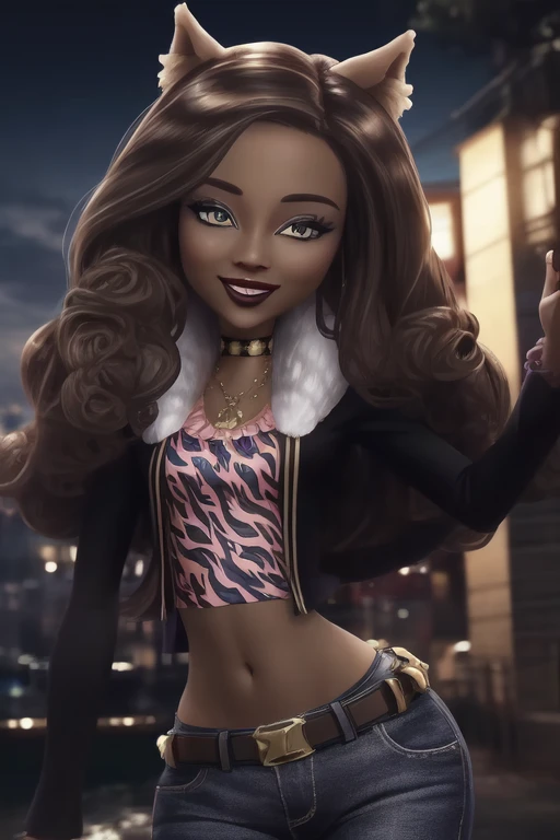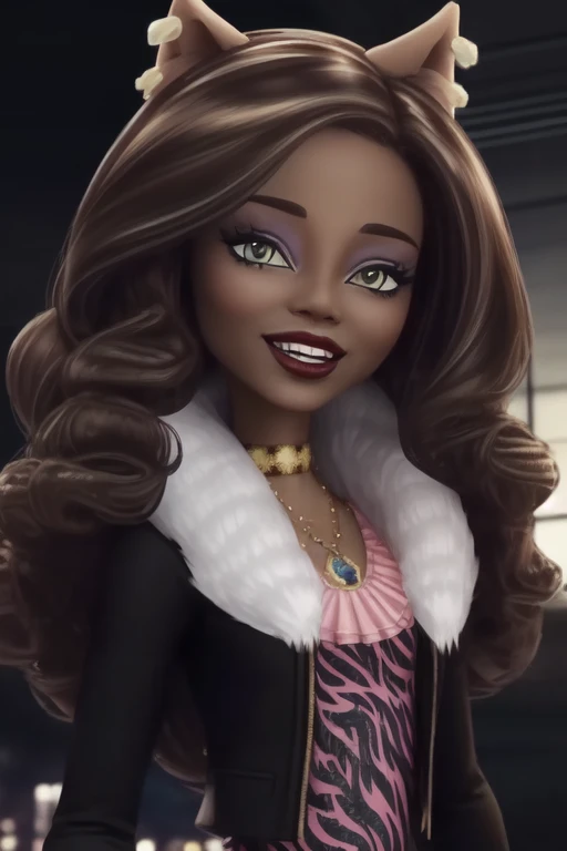 Clawdeen_Wolf_MH-3D, colored skin, dark skin, brown hair, wolf ears