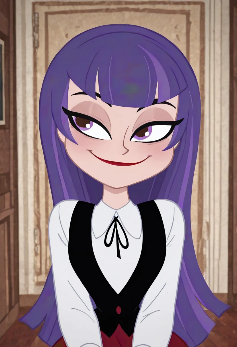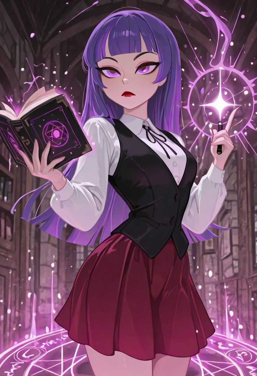 zeedcshg,1girl, long hair, purple hair, multicolored hair, fair skin, purple eyes, lipstick,blunt bangs