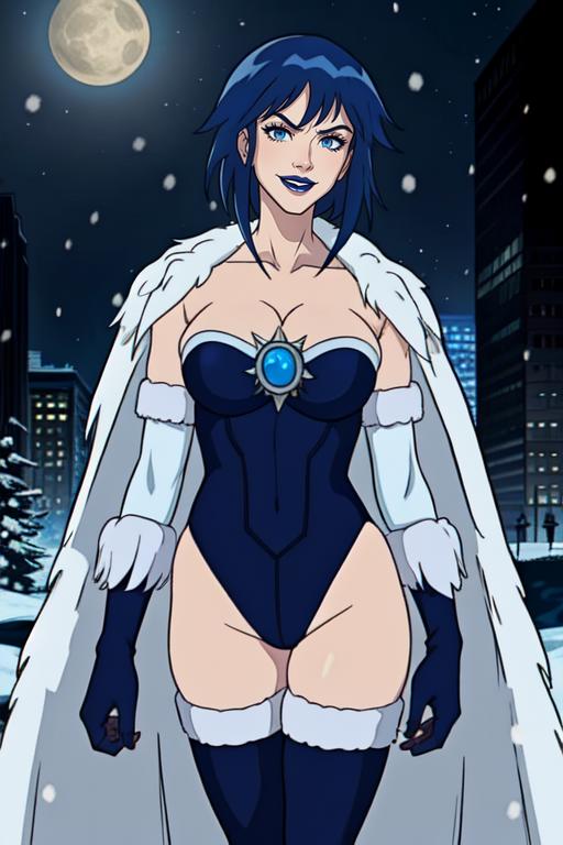 KFattire, white thighhighs, fur trim, blue boots, detached sleeves, blue leotard, collarbone,
