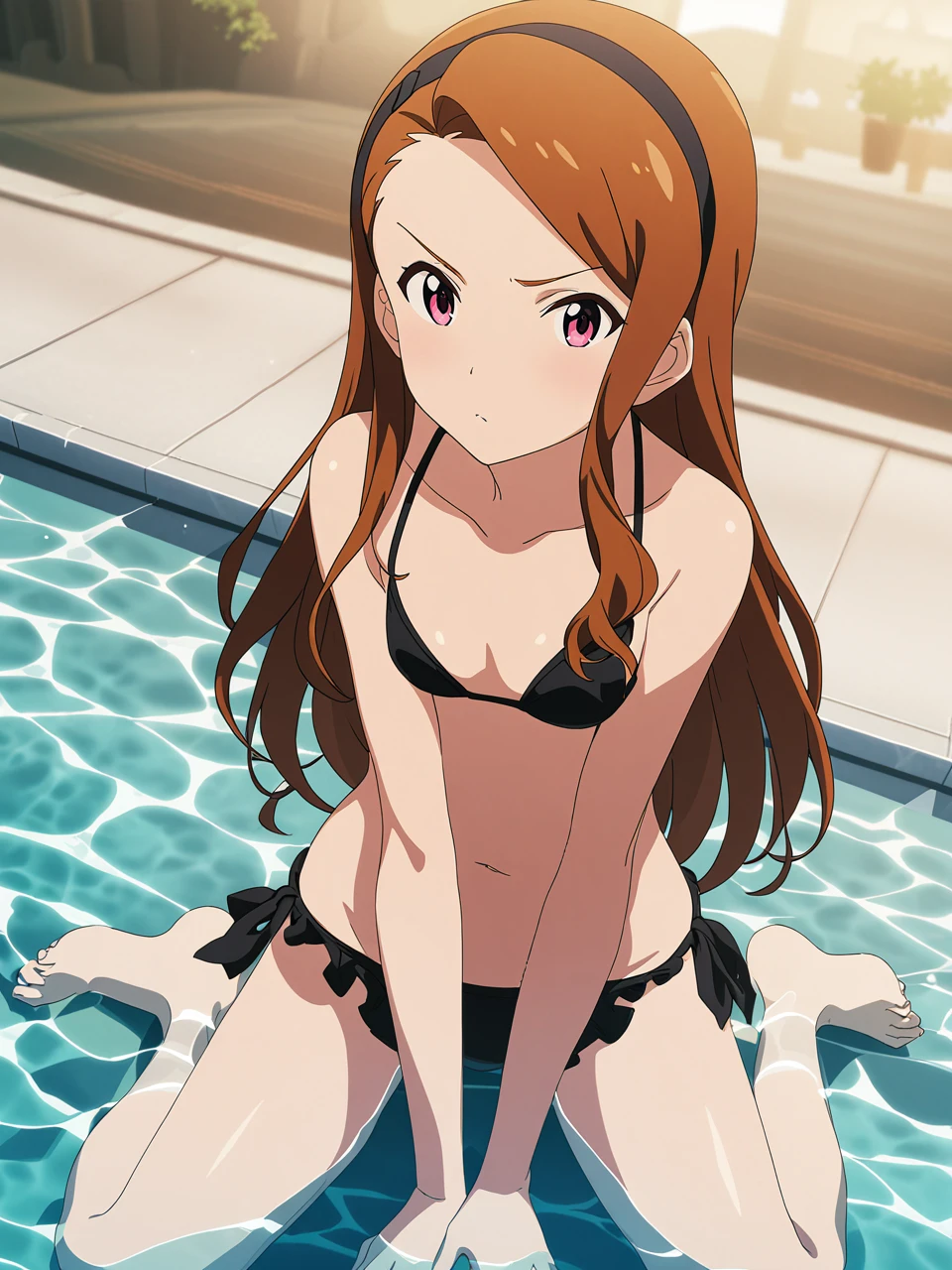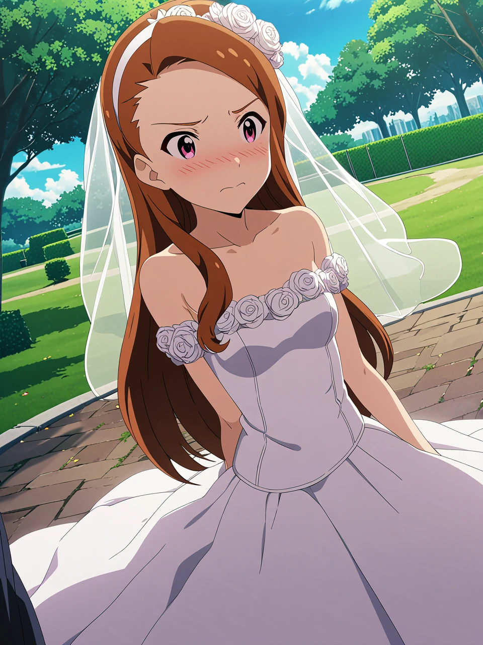 dsiori, brown hair, long hair, pink eyes, hairband