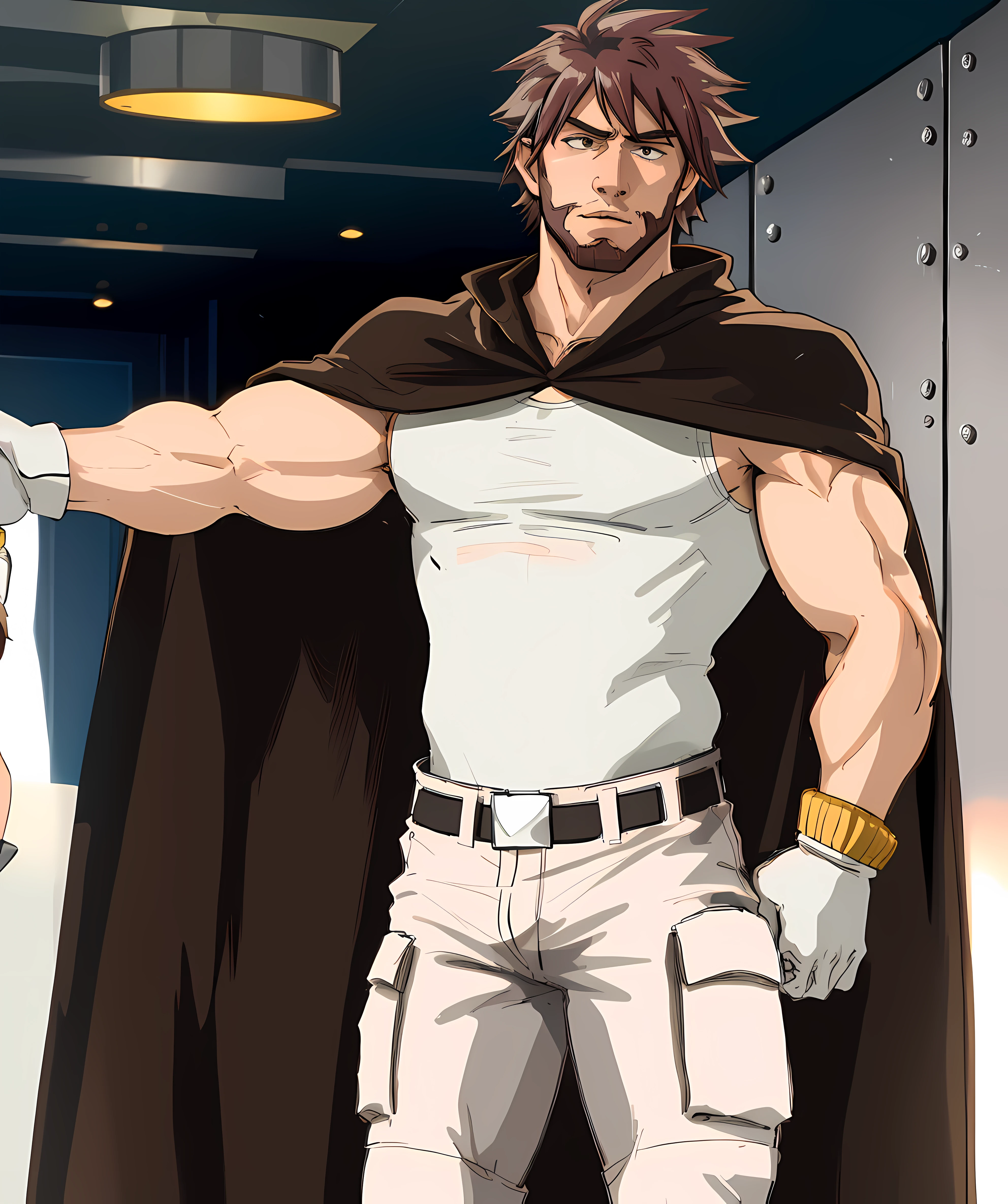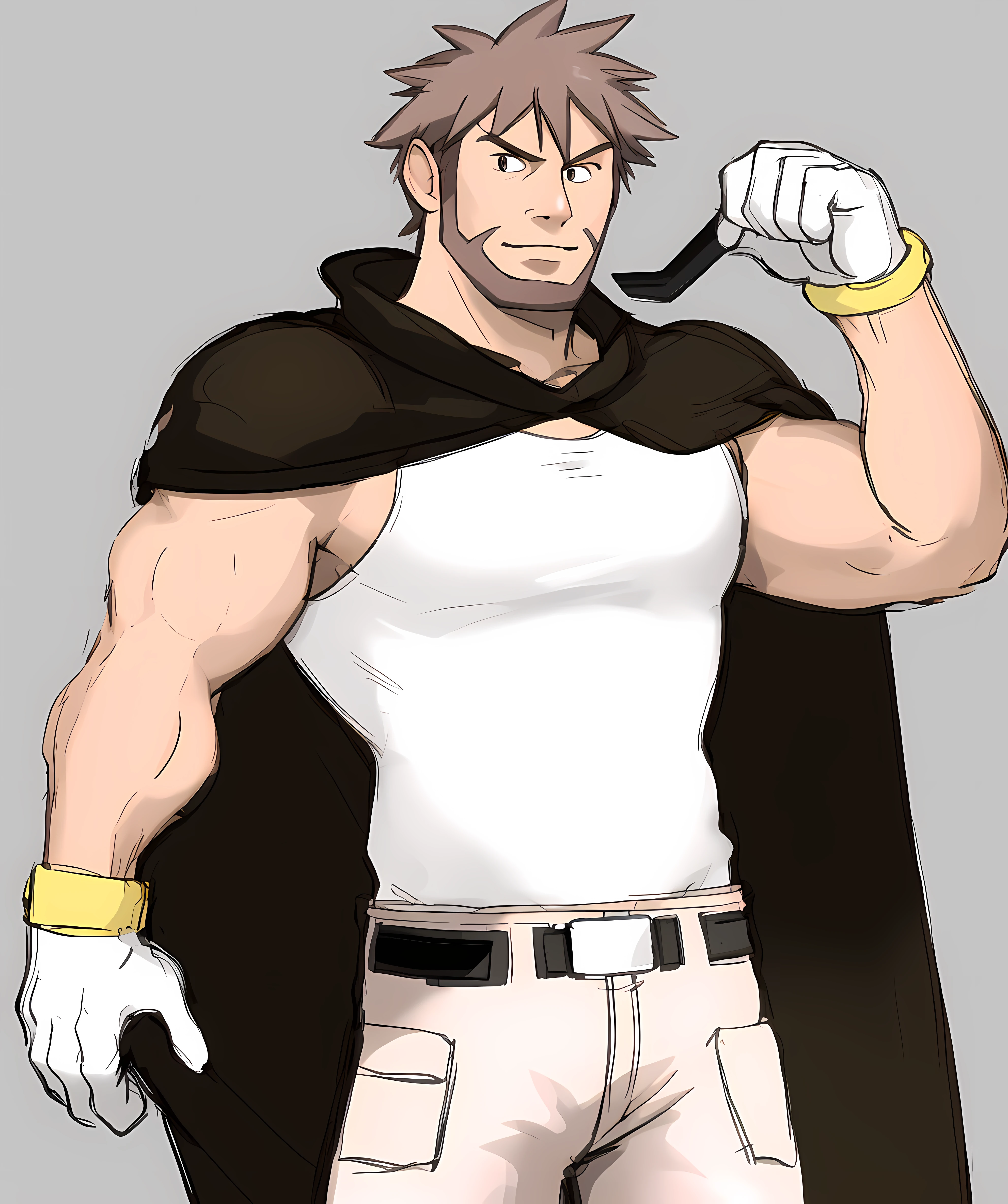byron_pokemon, long pants, white tank top, white gloves, brown spiky hair, beard, capeSpecify anything prompt that you want. This model has quite good rate of flexibility.