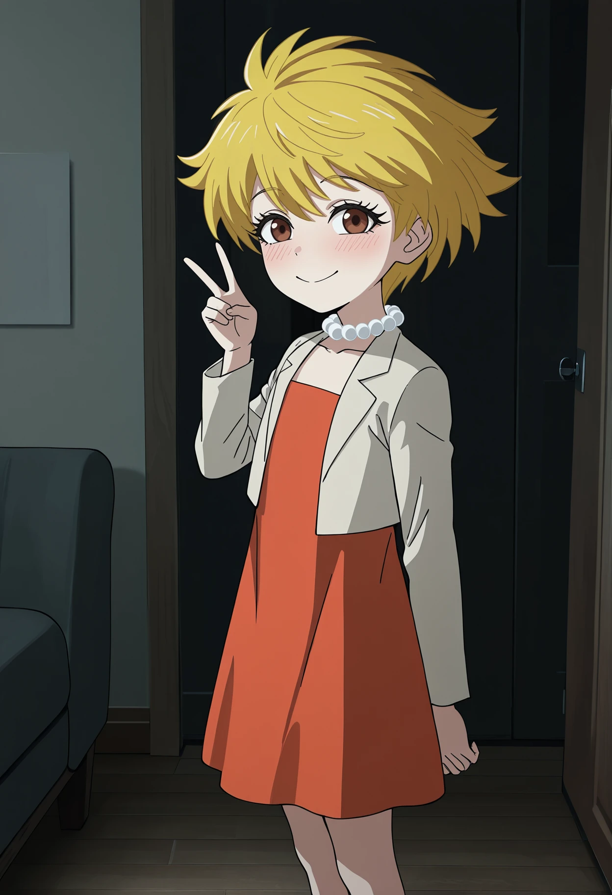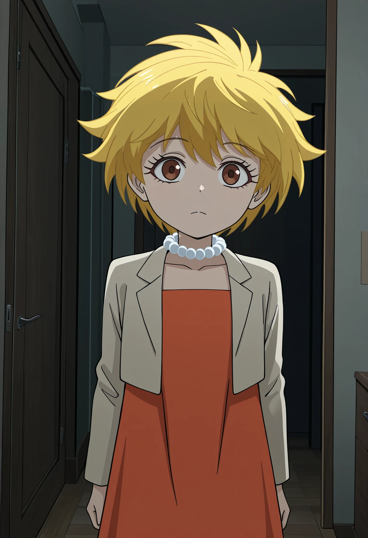 1girl, LisaDT, yellow hair, short hair, brown eyes,