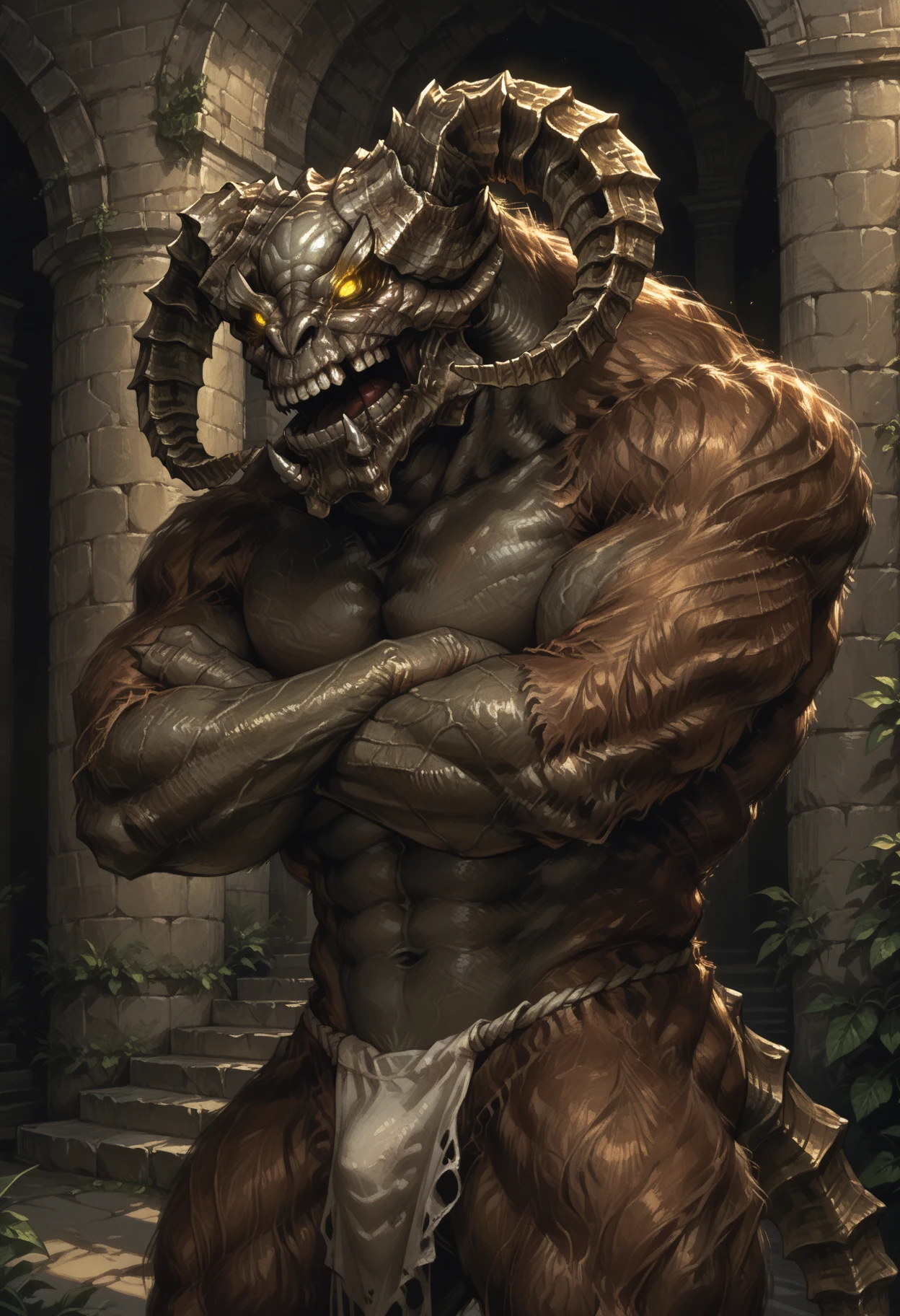 Trigger words (PDXL) : TaurusDemon, monster, horns, yellow eyes, glowing eyes, demon, brown fur