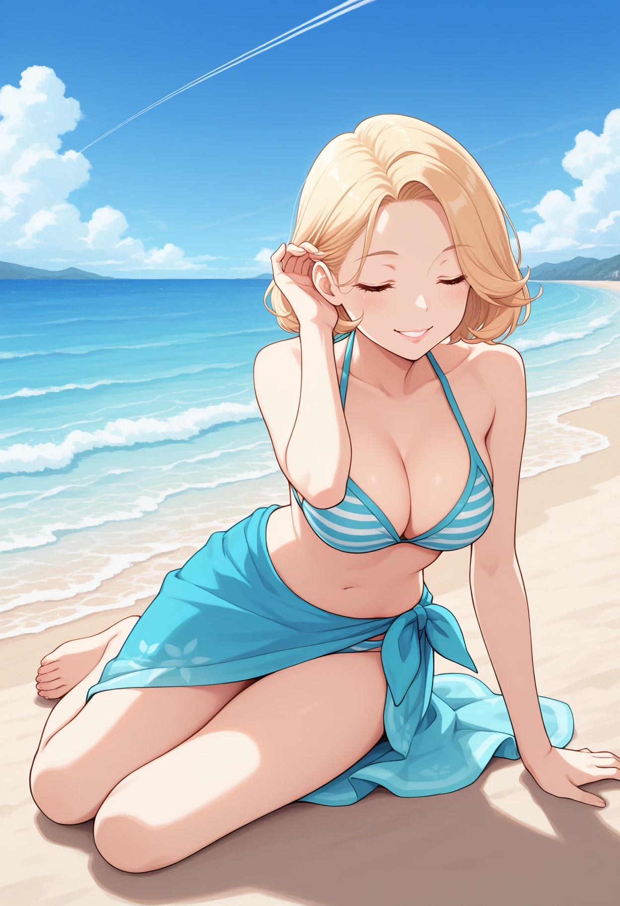 phyllis, blonde hair, medium hair, blue eyes, lips