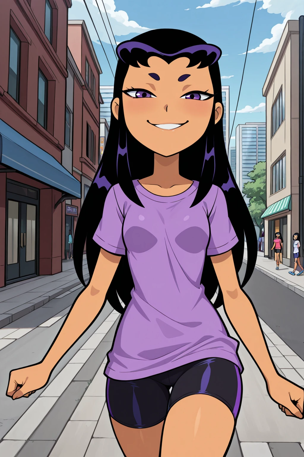 Casual Outfit: t-shirt, bike shorts, sneakers