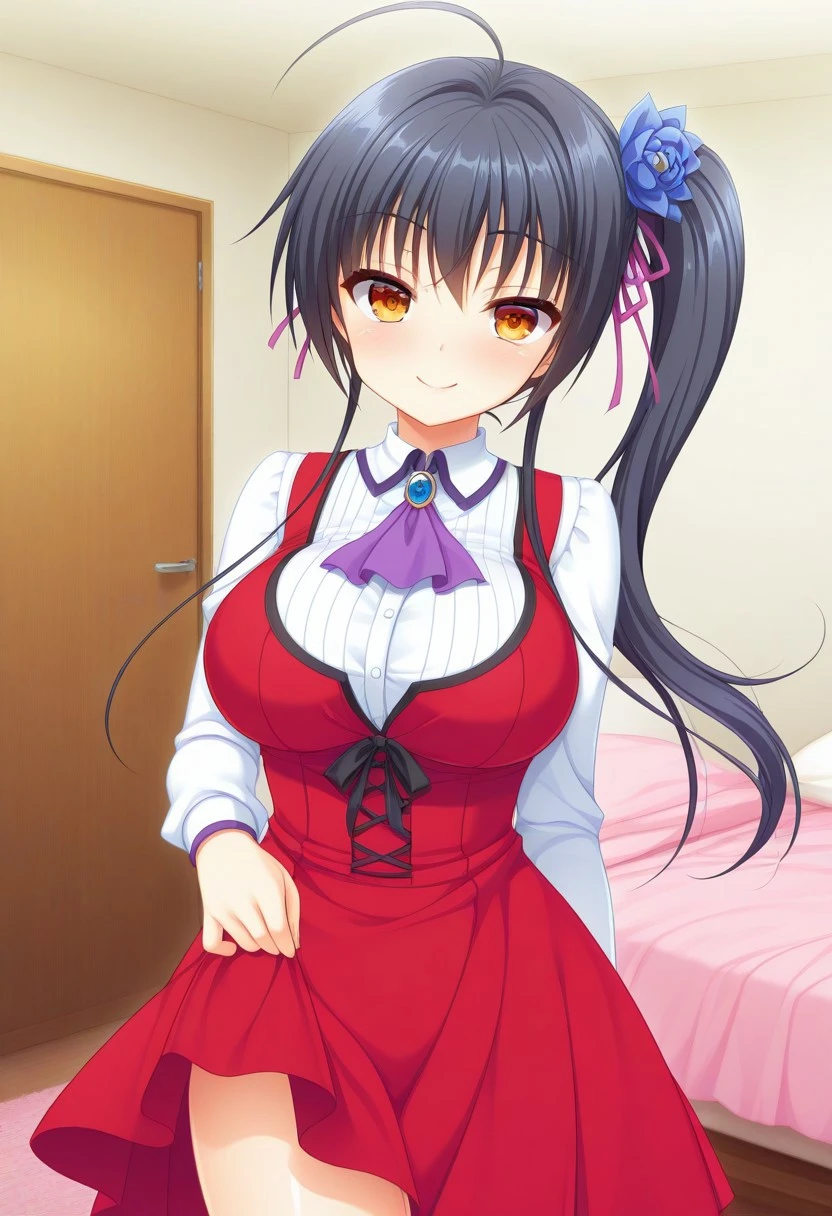 Hair Arrangement 2:side ponytail, flower hair ornament, hair ribbon,