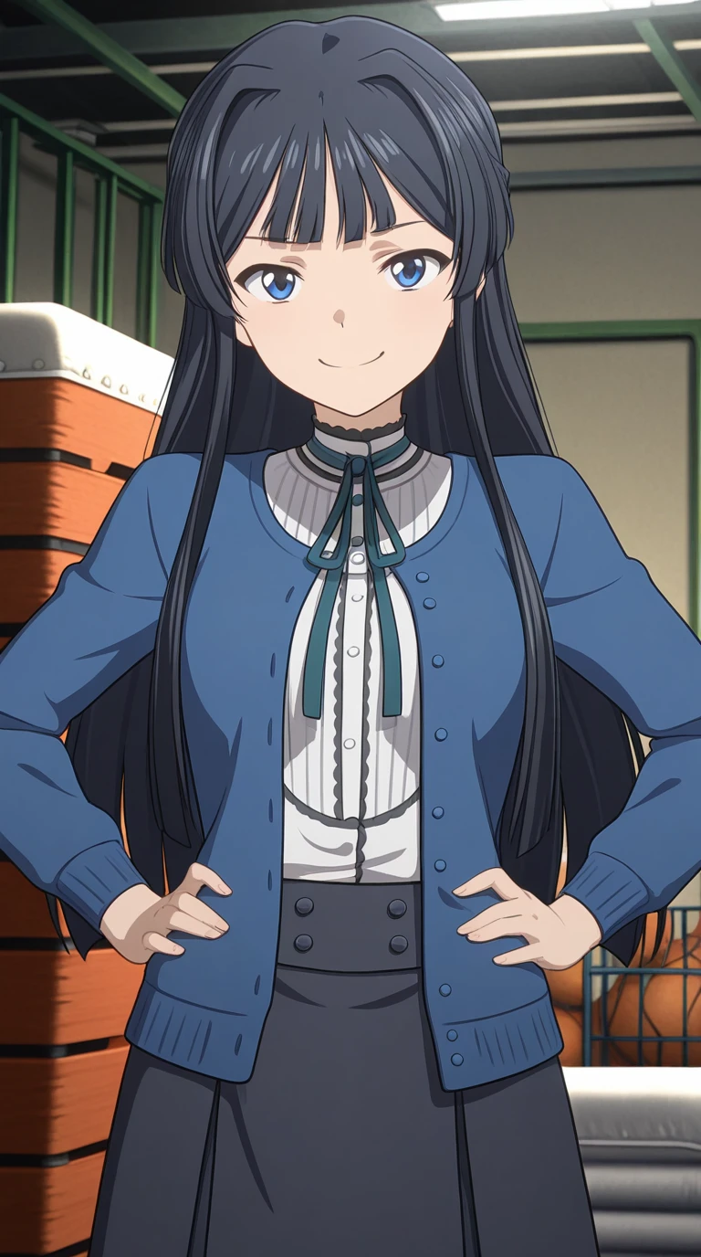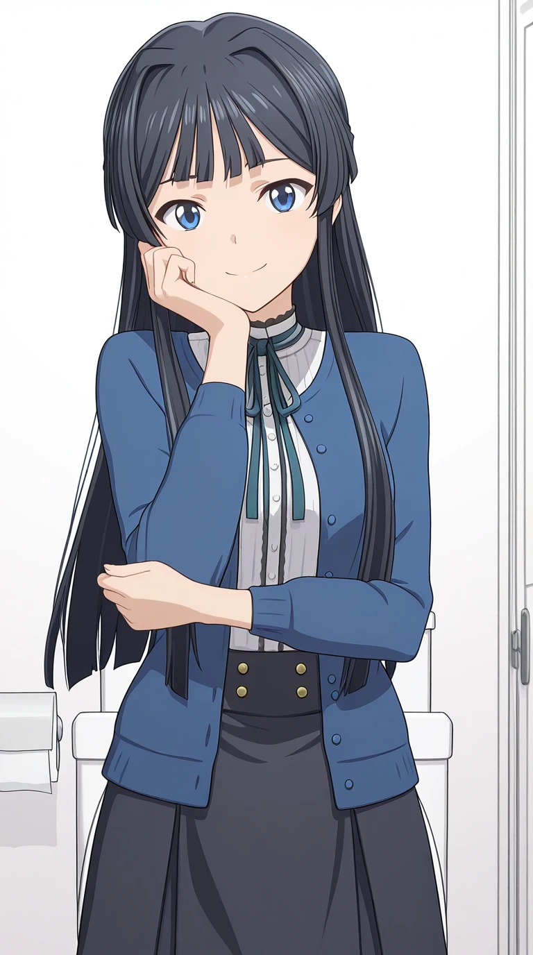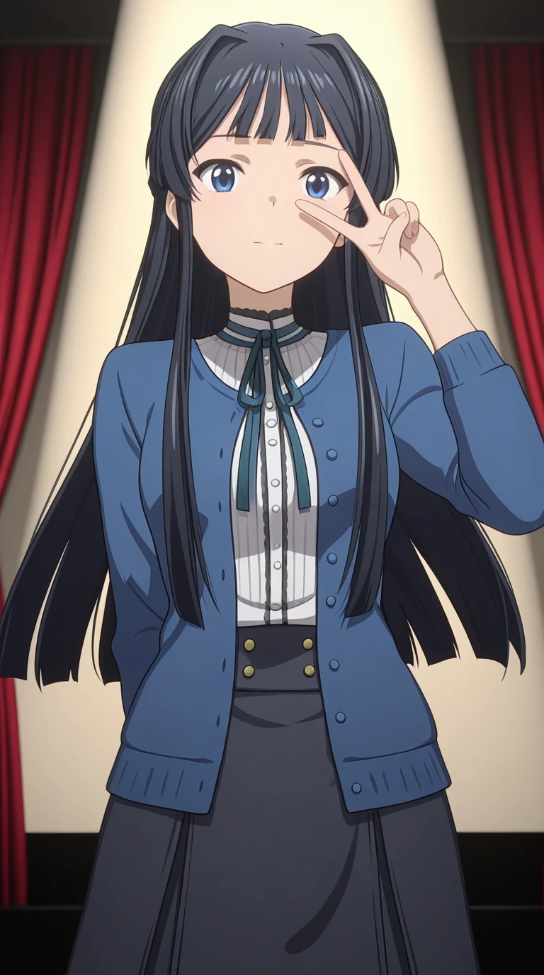 skirt, shirt, ribbon, jacket, white shirt, black skirt, neck ribbon, cardigan, blue jacket