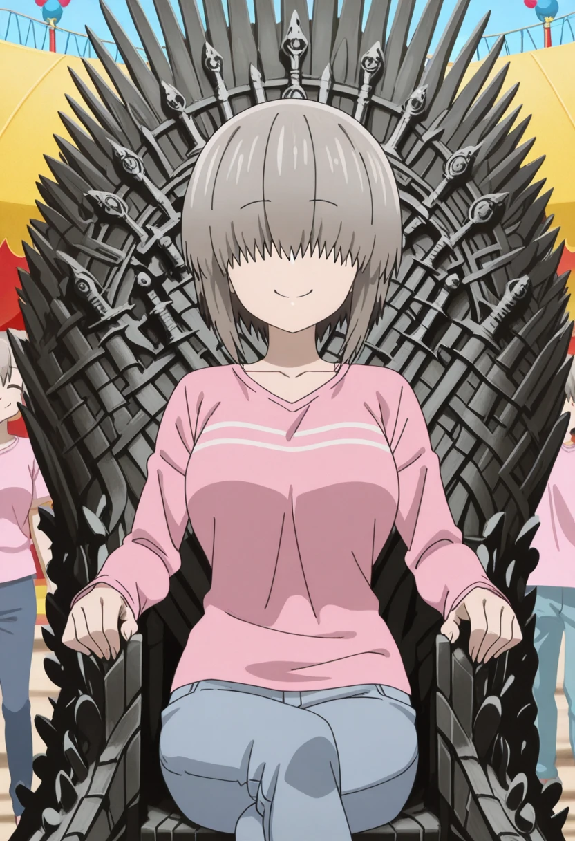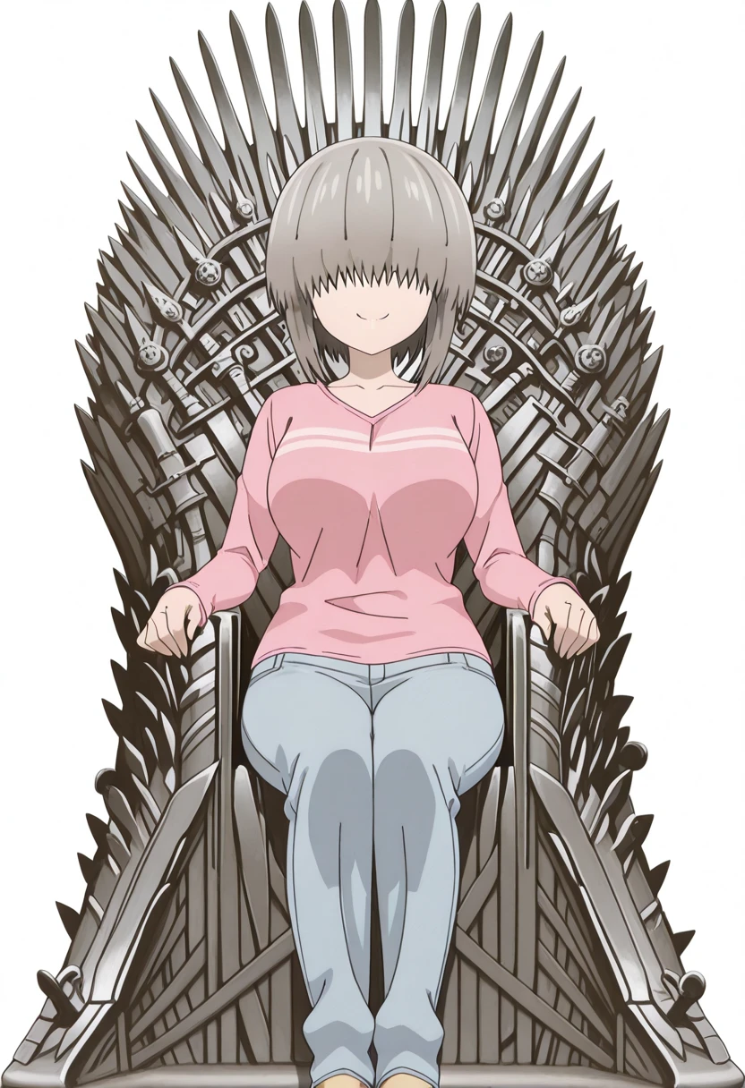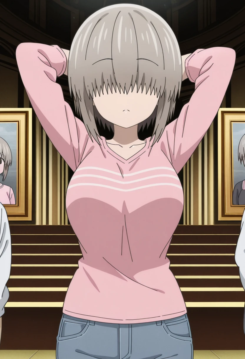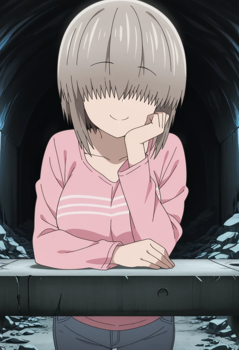 yanagi uzaki, short hair, bangs, grey hair, hair over eyes, covered eyes, long bangs, sidelocks, mature female, large breasts, anime screencap