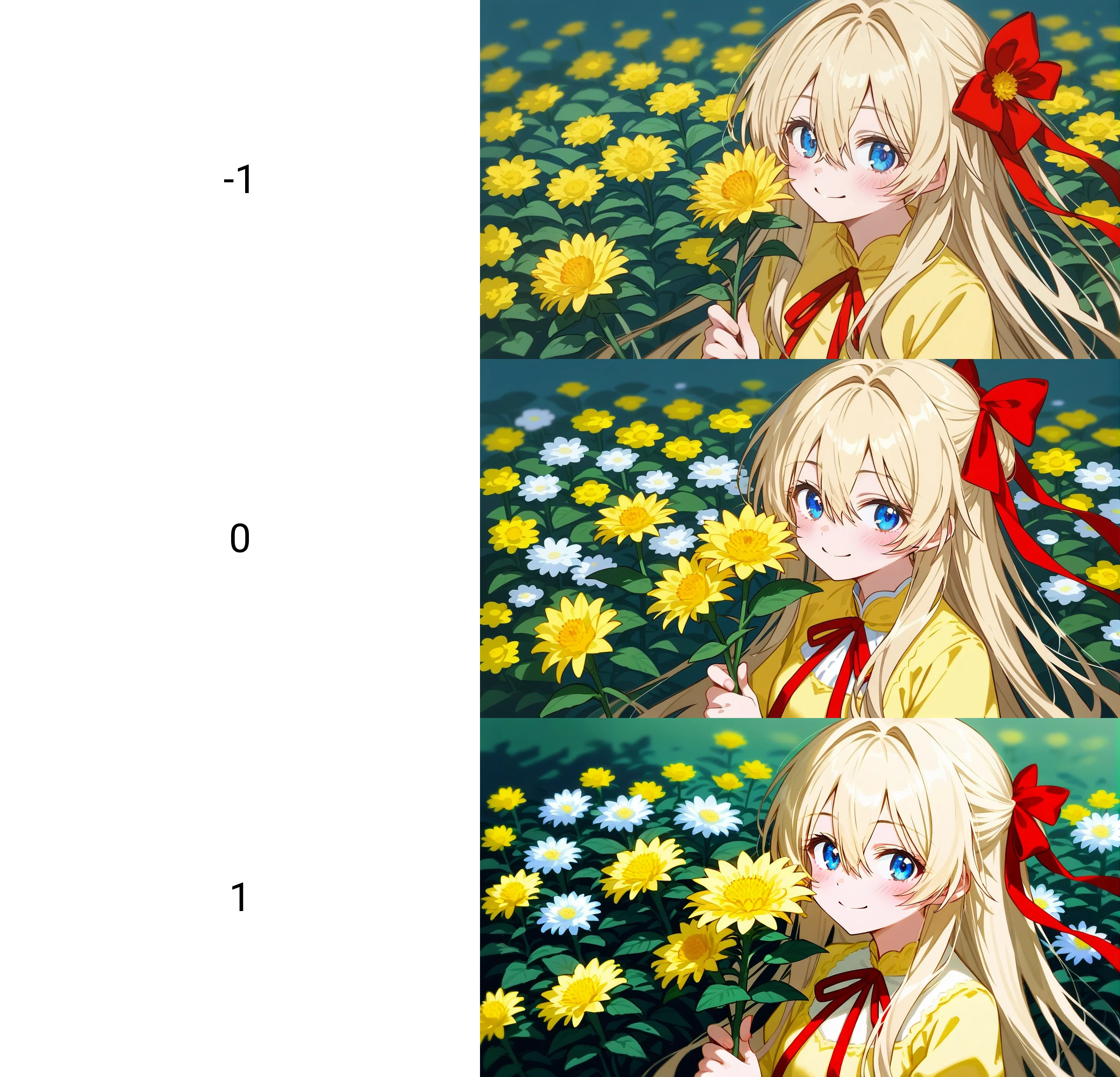 this LORA on the Pony6.0 training standard, it is recommended to keep the weights between -2 and +2. As shown in the figure, the function of this LoRA is to adjust the contrast of the image. Different effects can be achieved by using positive or negative weights.