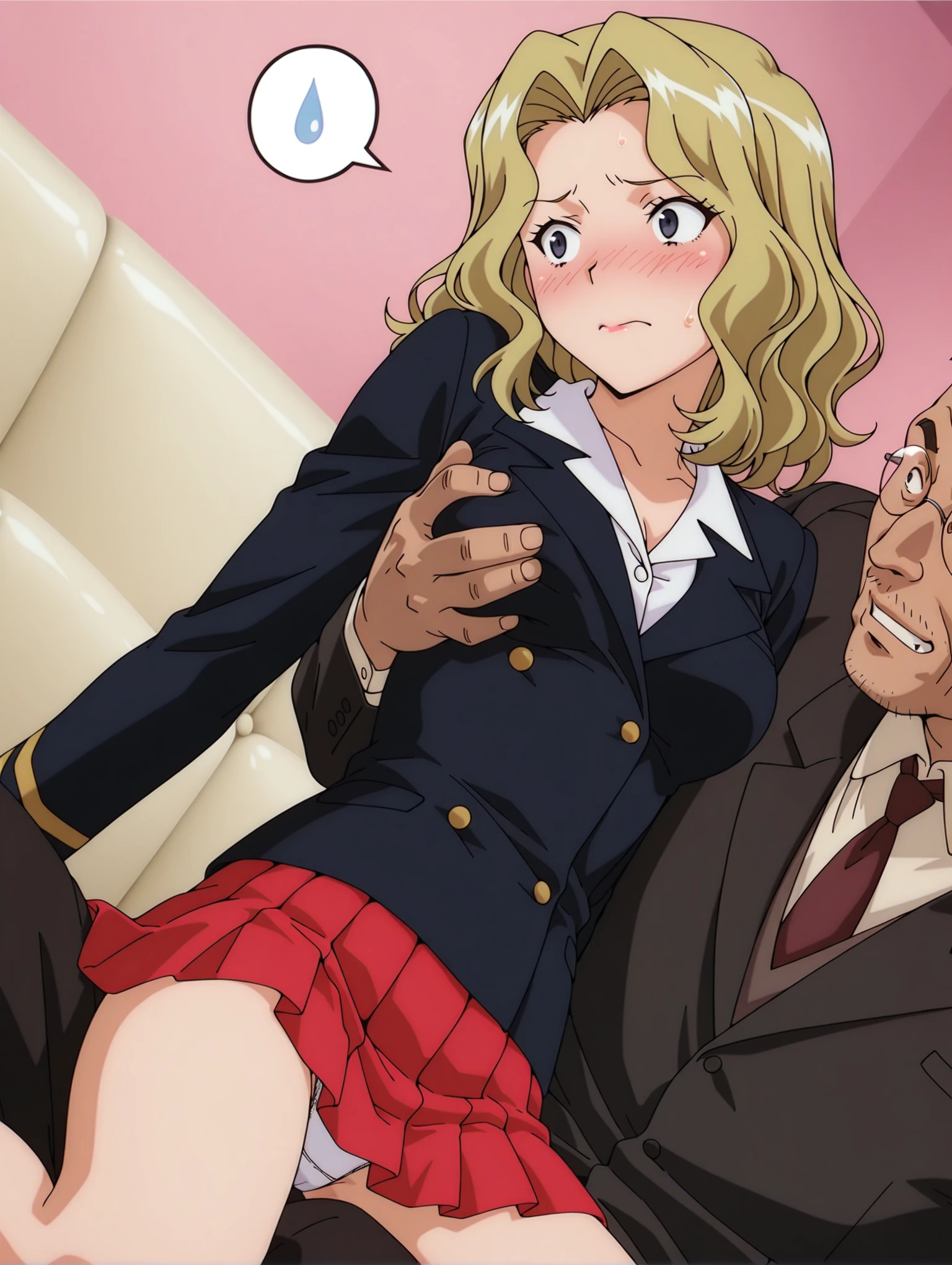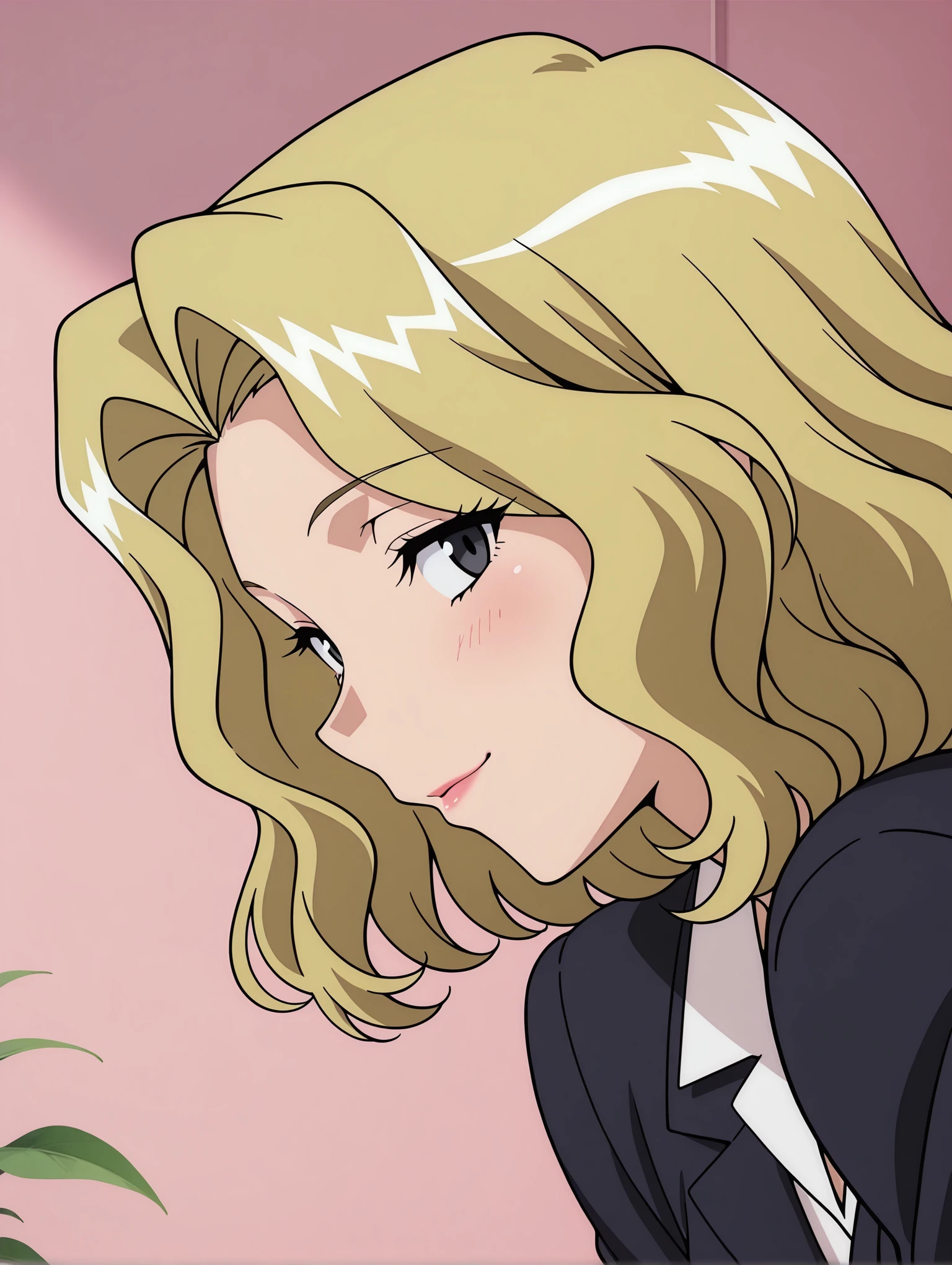 トリガーワード・c_d_d,blonde hair,wavy hair,short hair,black eyes,