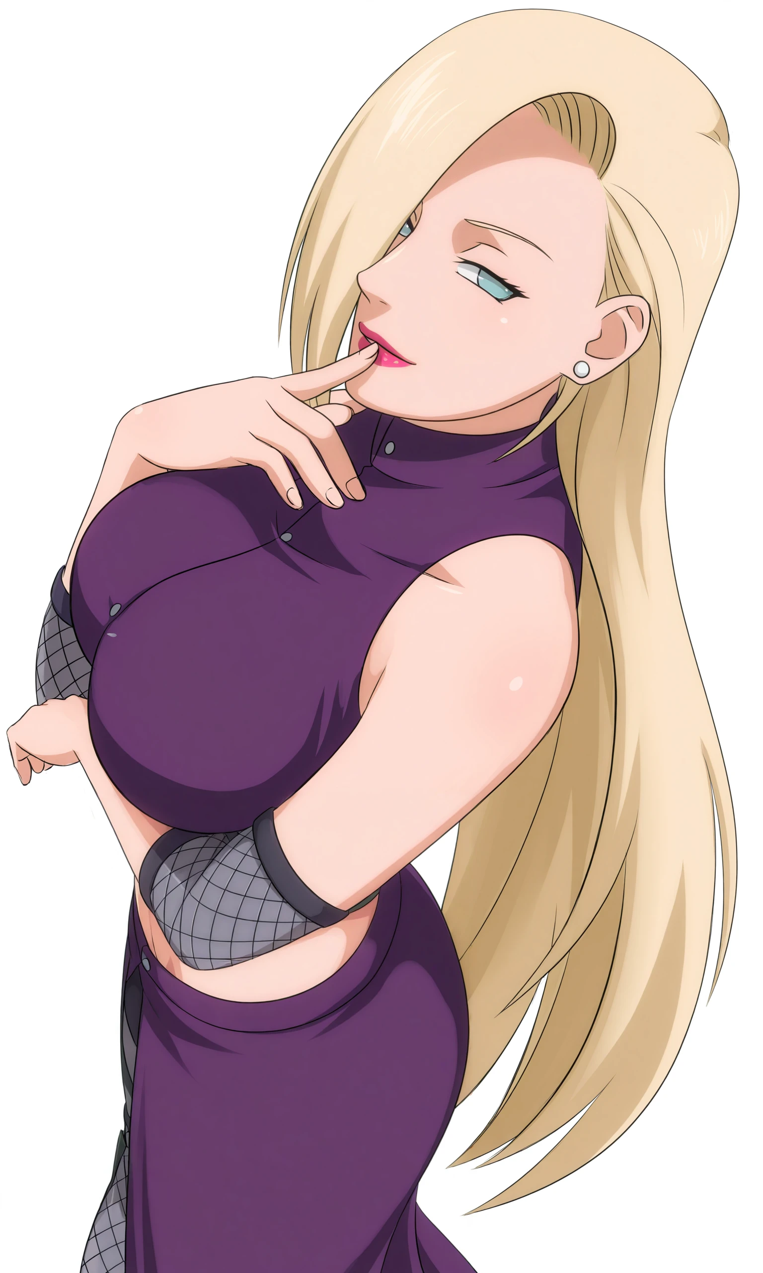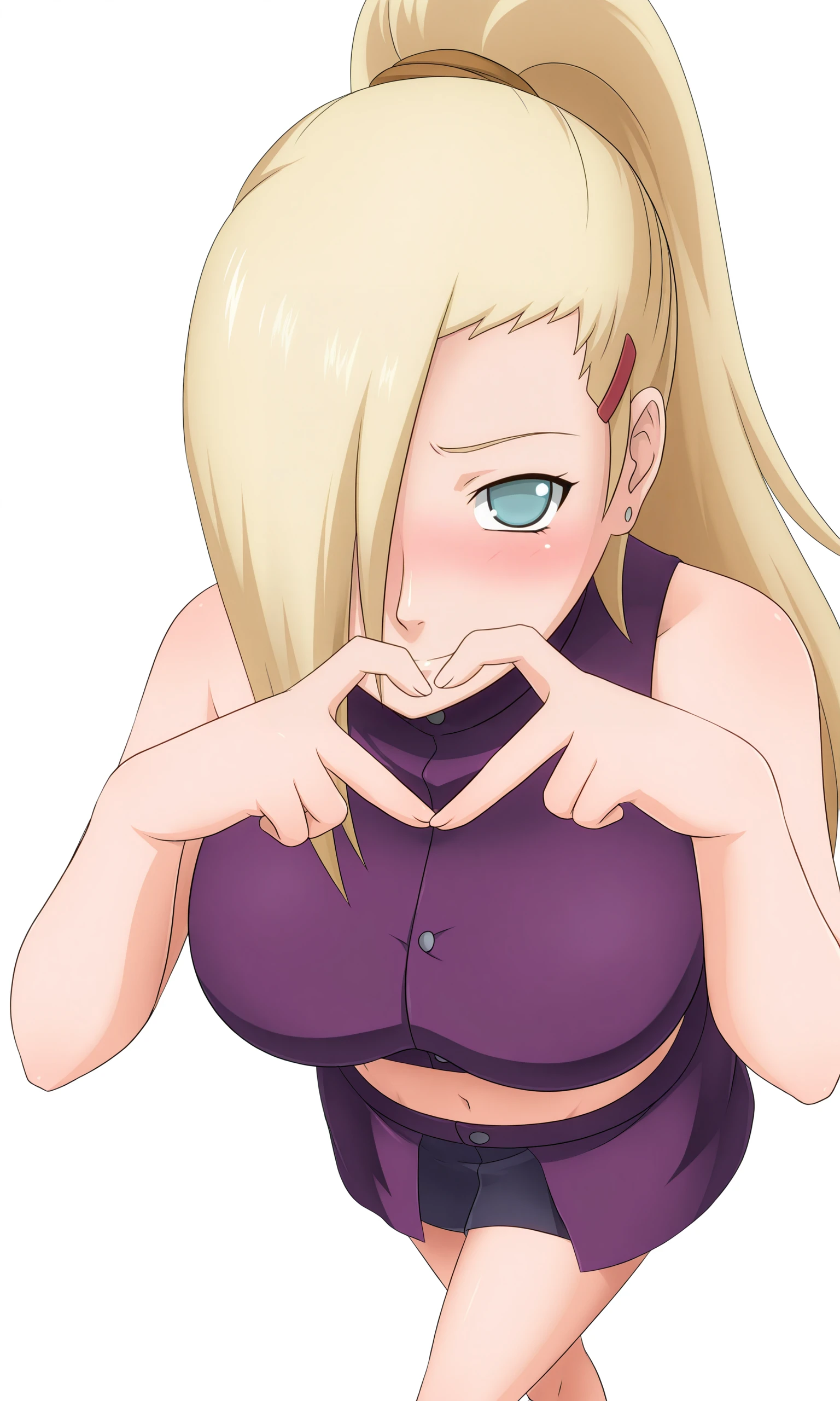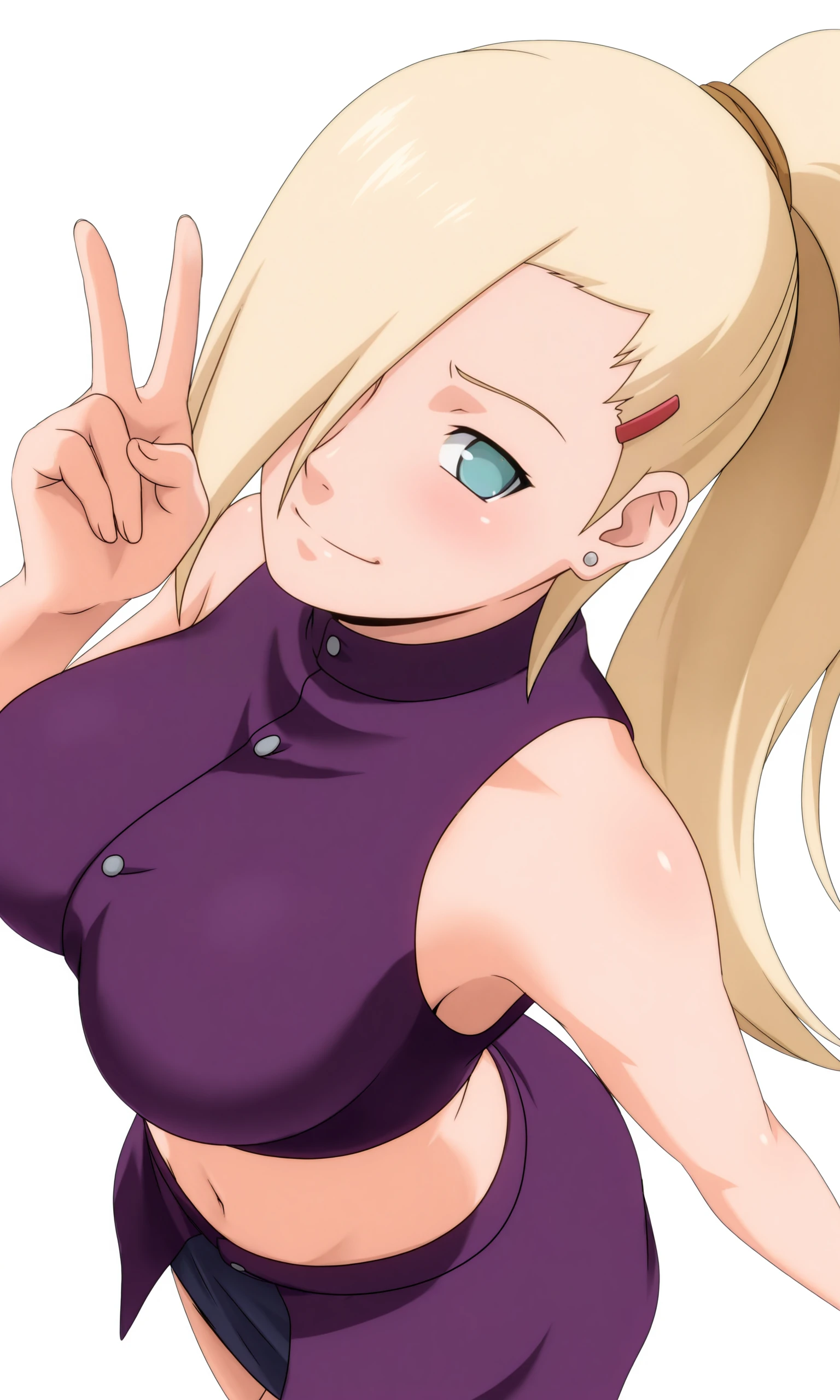 inoyamanakashippuden, long hair, blonde hair, hairclip, blue eyes, hair over one eye, earrings, high ponytail,