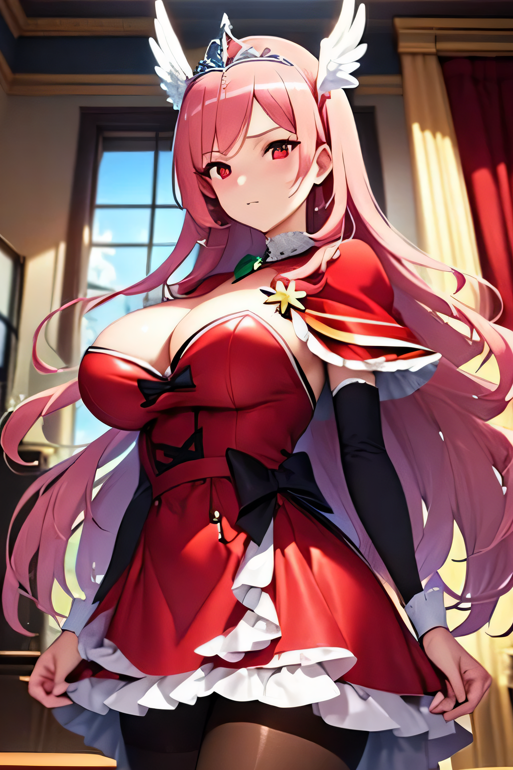 Cure Passion dress, red sleeves, winged tiara, capelet, black pantyhose, brooch, black ribbon, clover ornament, red high heels,