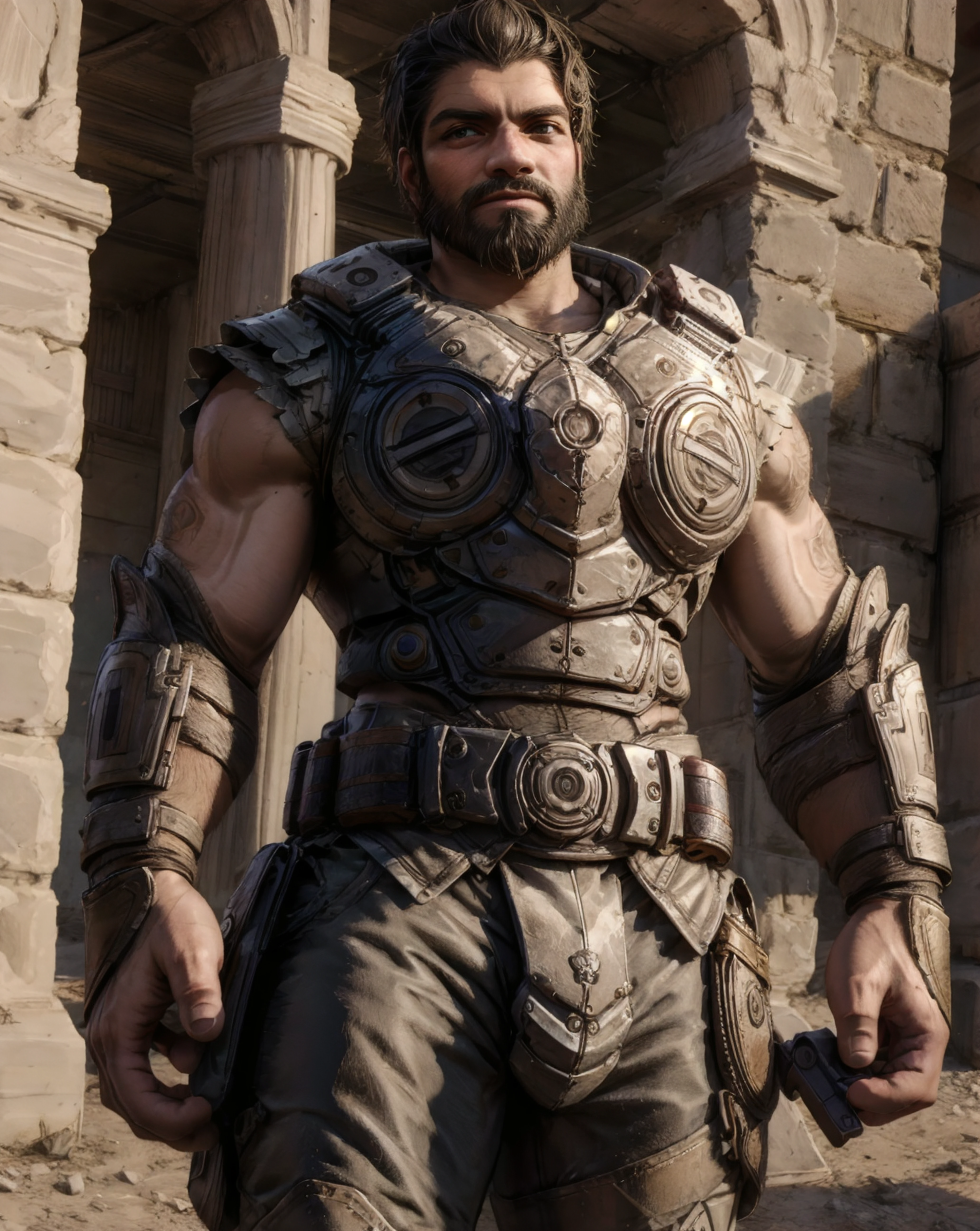 I made Dominic Santiago LoRA again. This time I made full beard's version of Dom. This version is only seen in Gears of War 3 as Dom grew some big beard. Because I find this version is sexier and unique look of Dom, I decide to make this LoRA too, albeit of fewer images available online. if you want to use normal Dom like in Gears of War 1 and 2, you can visit this link: OG Dom.