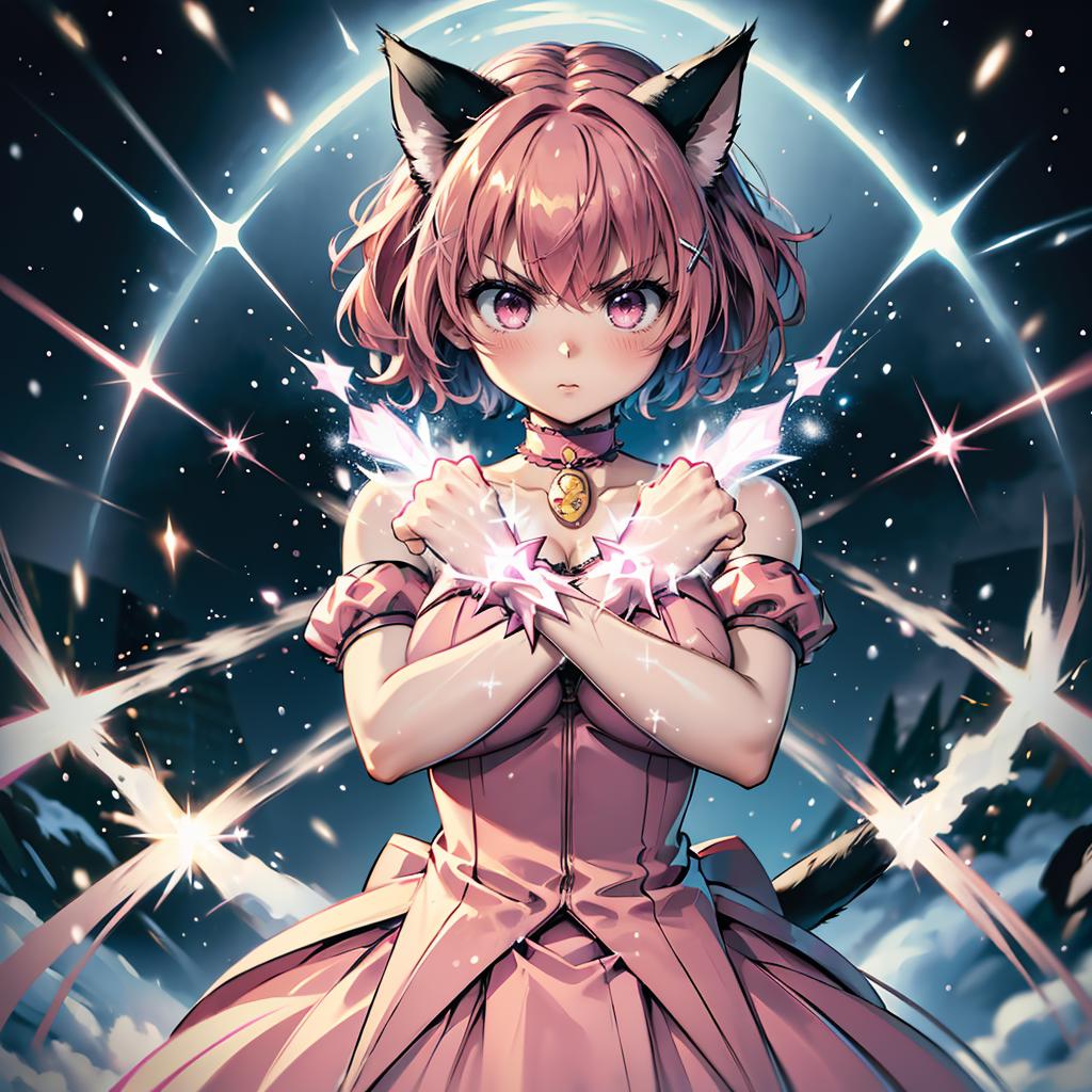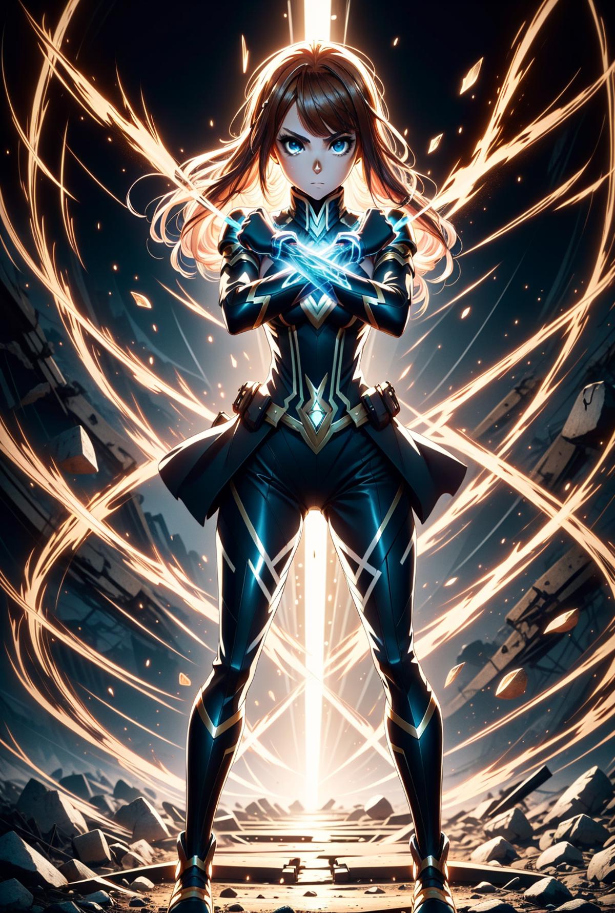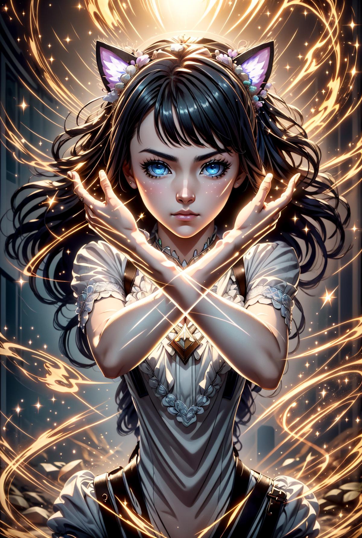 I attempted to create a depiction of arms crossed in an 'X' shape using Stable Diffusion's prompts alone, but it seemed unfeasible, so I assembled it with Lora. This pose might be part of a transformation scene, focusing on the character. Depending on the Lora character, it could also be used for a dual-wielding stance, or instead of clenched hands, the fingers could be extended to form an 'X' (cross mark). Feel free to experiment with this versatile pose.