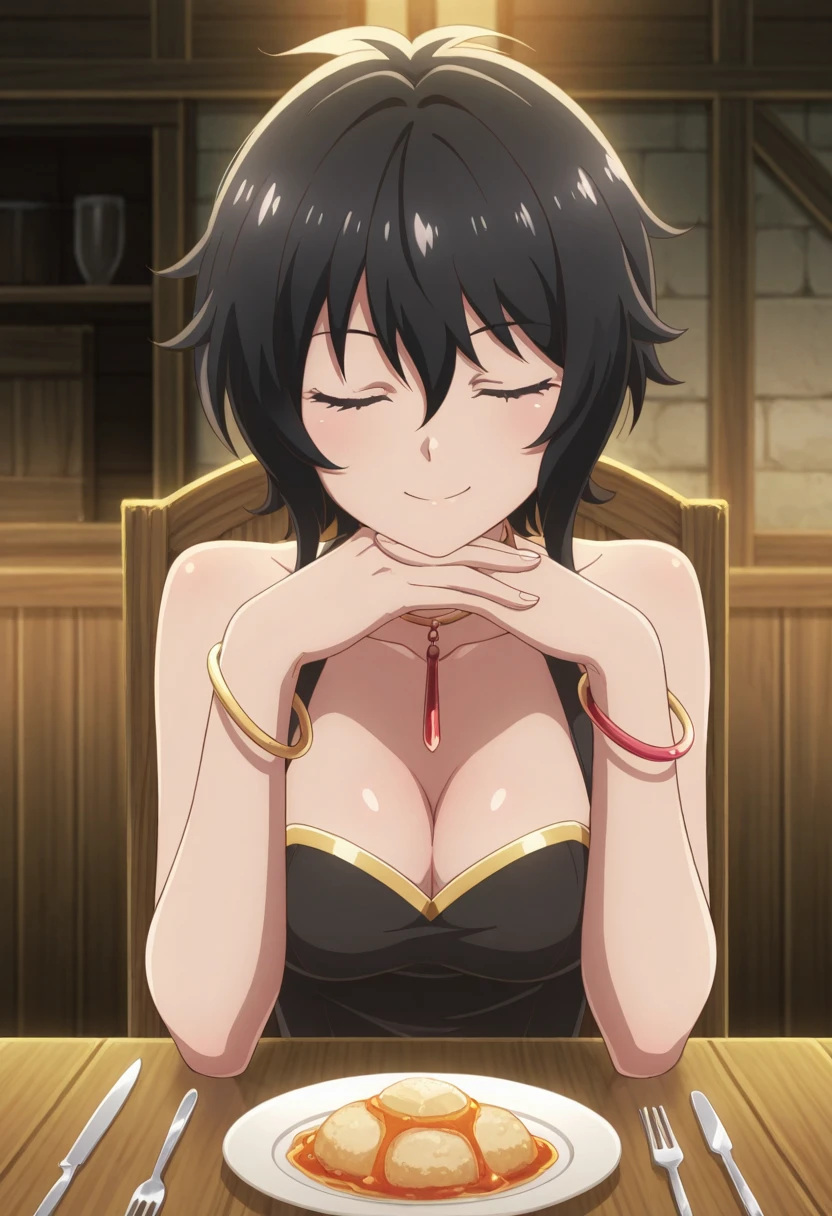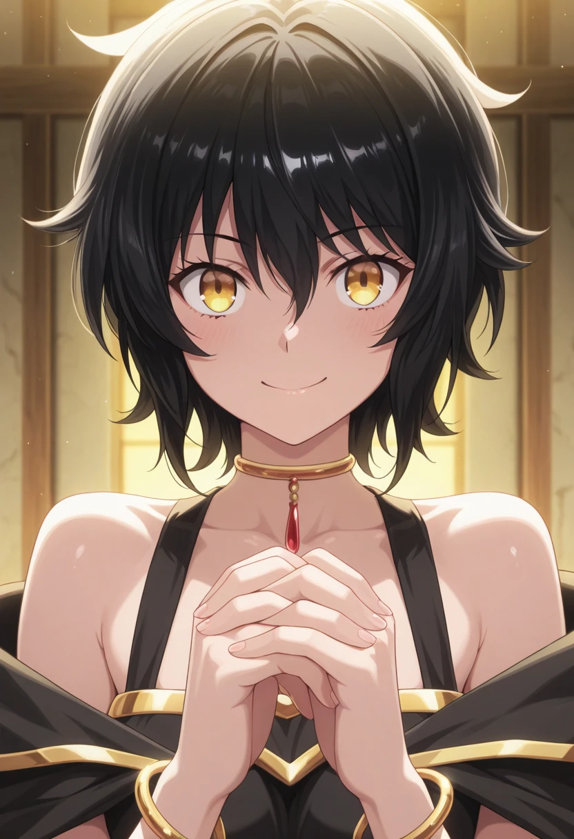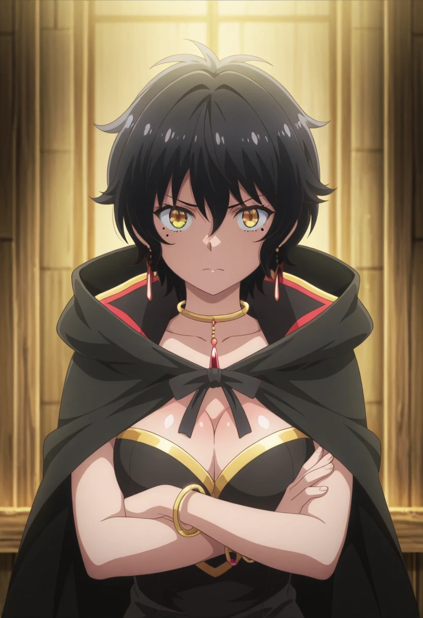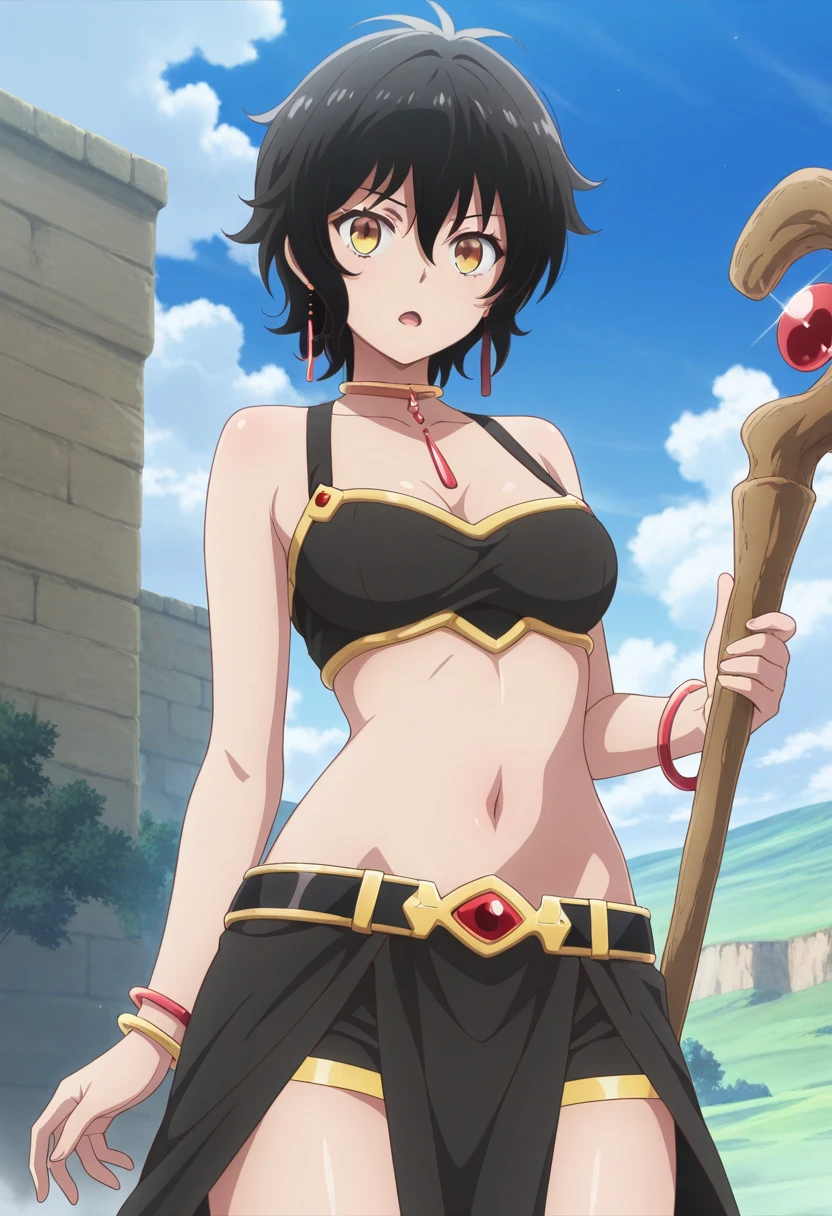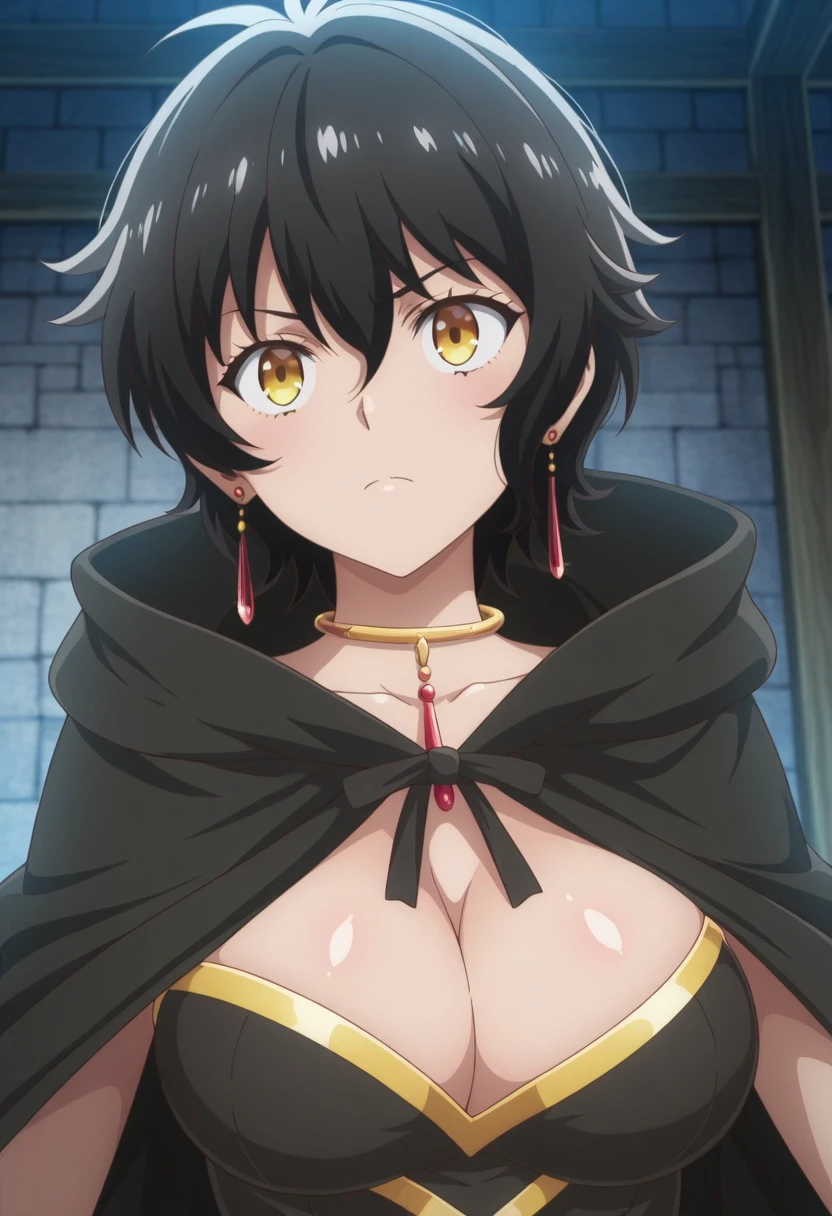 Trigger Words: remia (isekai cheat magician), short hair, black hair, yellow eyes