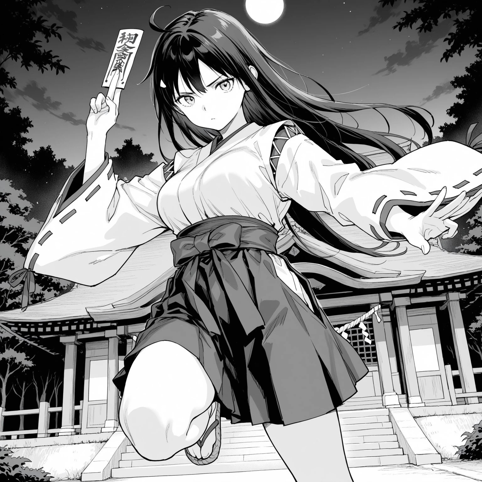 2. kagmik, japanese clothes, hakama, hakama short skirt, skirt, sandals, ribbon trimmed sleeves, miko, tighhighs
