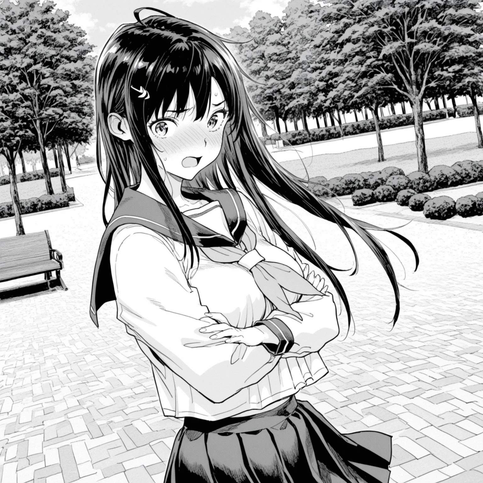 base: kagmng, 1girl, ahoge, hair ornament, hair ornament, long hair, breasts,