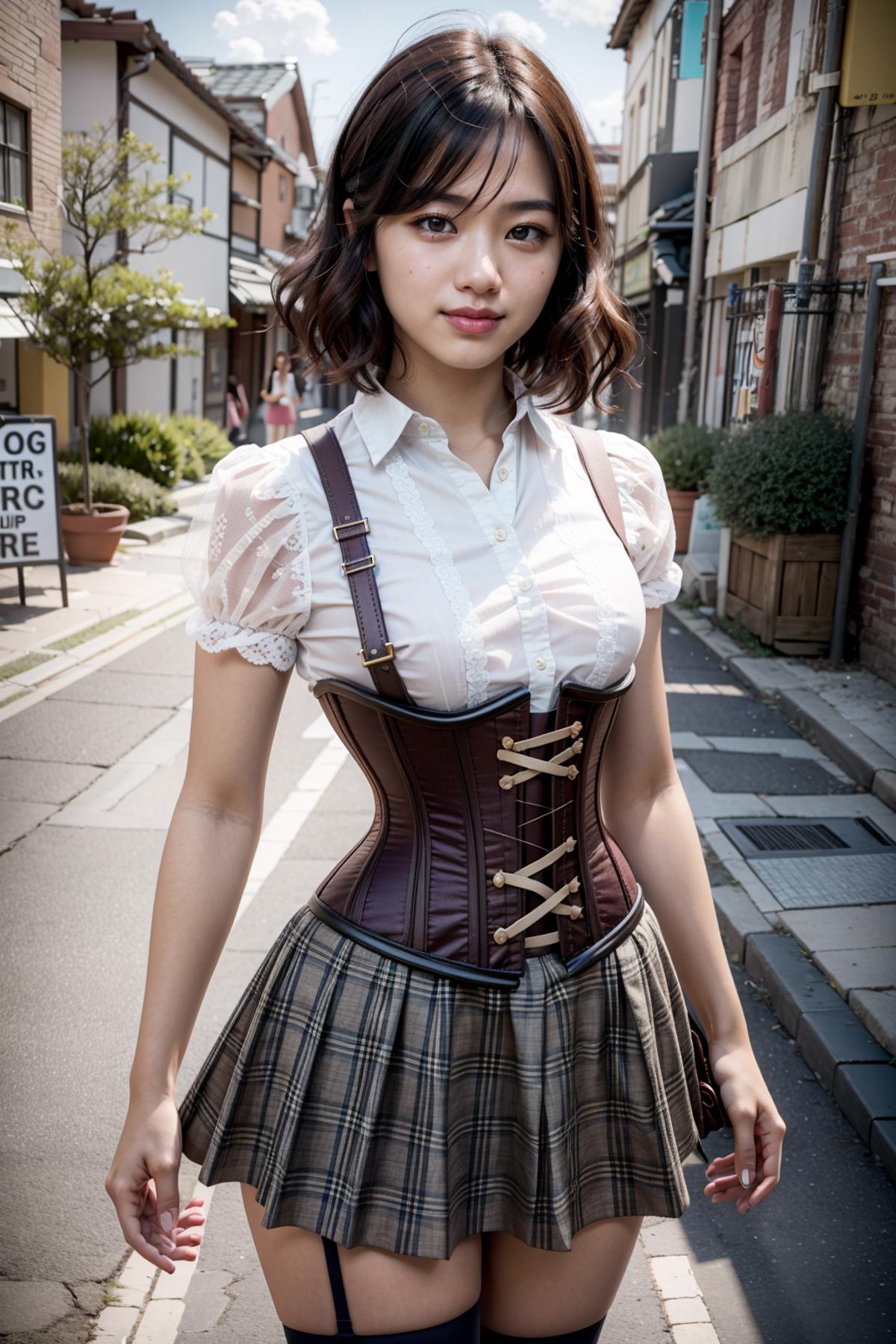 Corsets that come up to the bustline, but don't cover the breasts, they go great over the top of a blouse, worn with a brassier or with nothing at all...