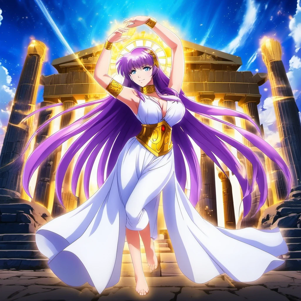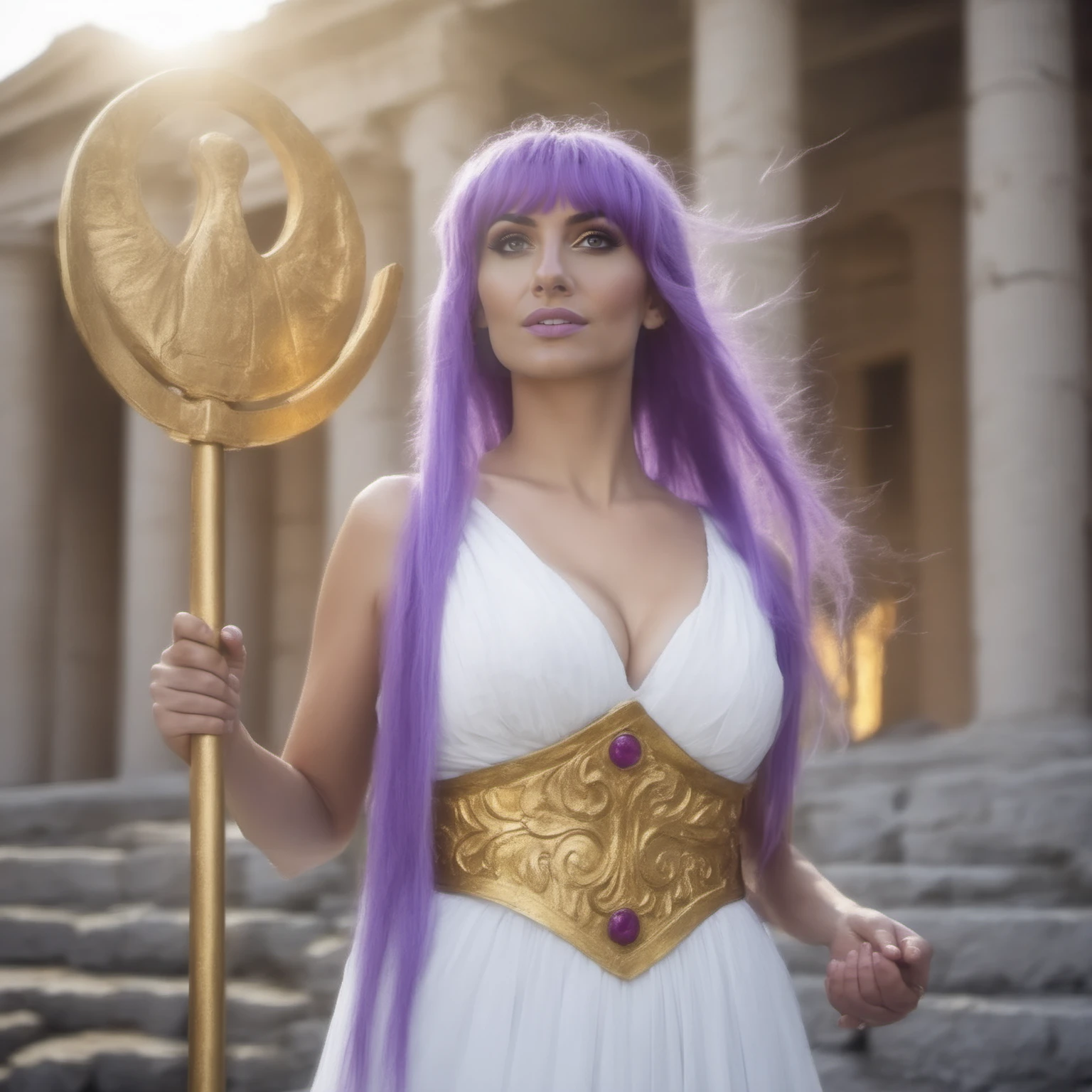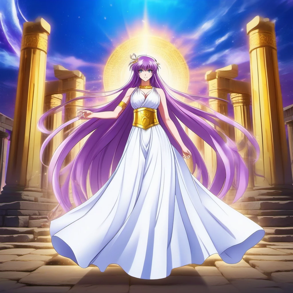 Saori Kido (城戸沙織 Kido Saori) is the reincarnation of the goddess Athena, one of the main characters of the series Saint Seiya from Masami Kurumada. Athena is the goddess of love, strategy, and hope. According to mythology, she's the goddess who inherits the control over the Earth from Zeus (her real father).