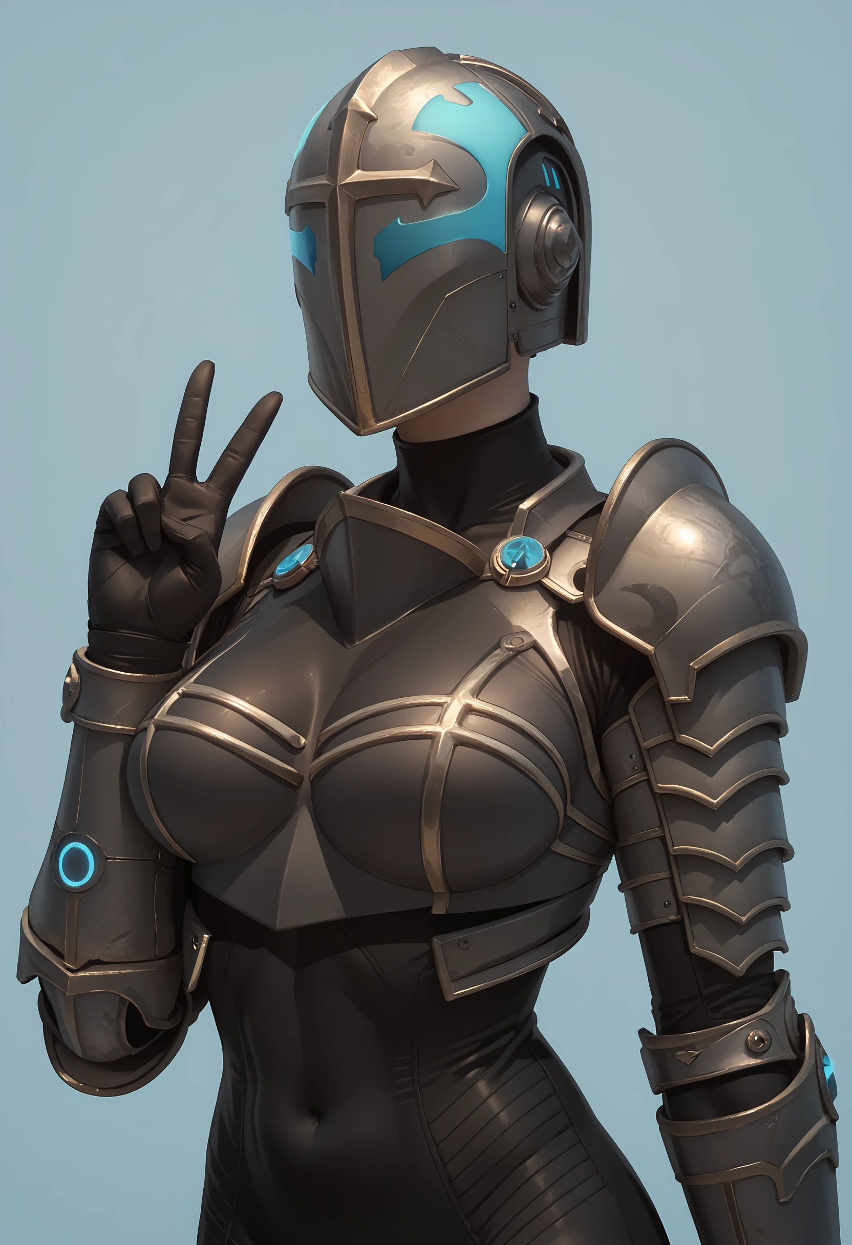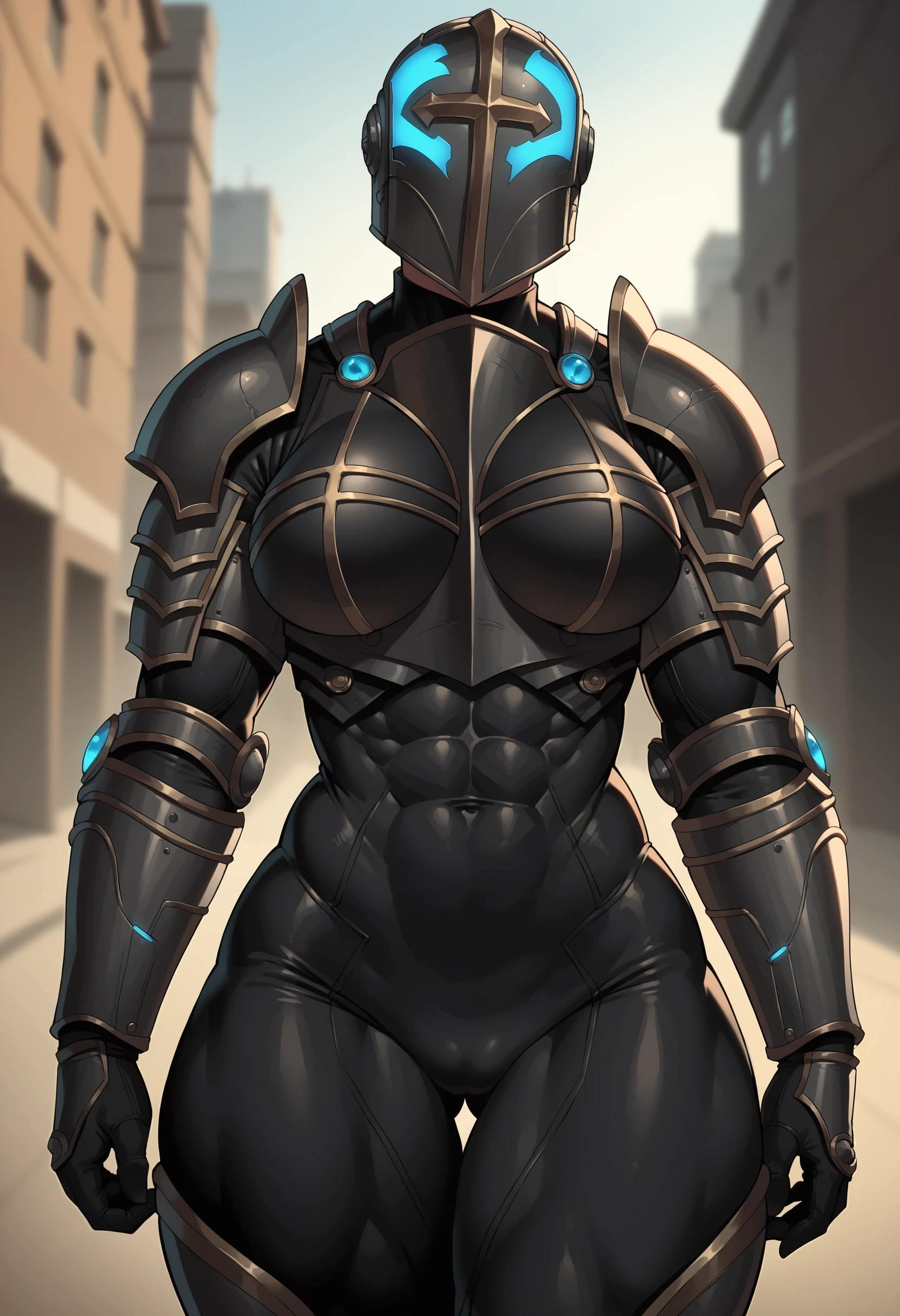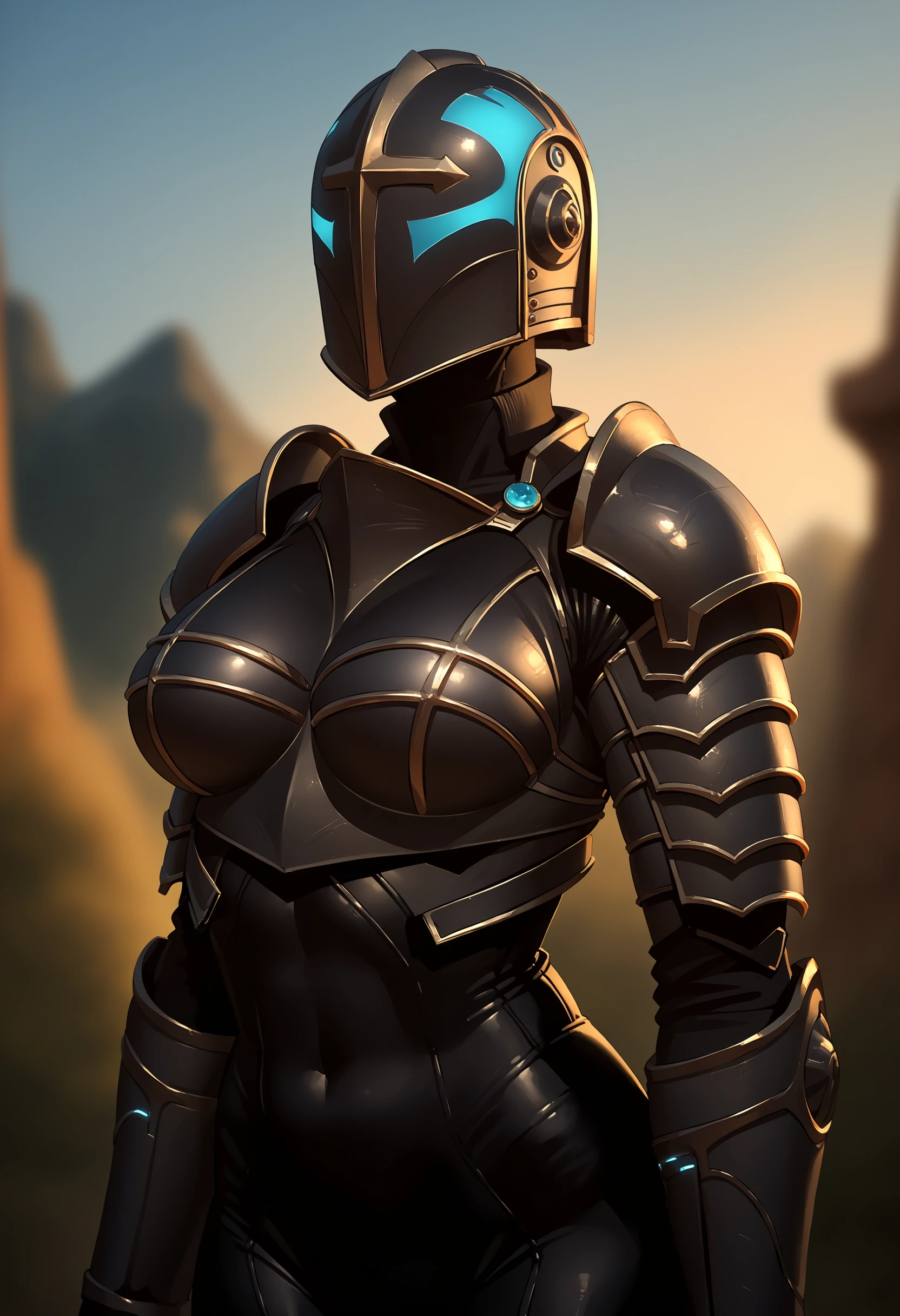 1girl, breasts, bodysuit, black bodysuit, shoulder armor, breastplate, armor, skin tight, helmet