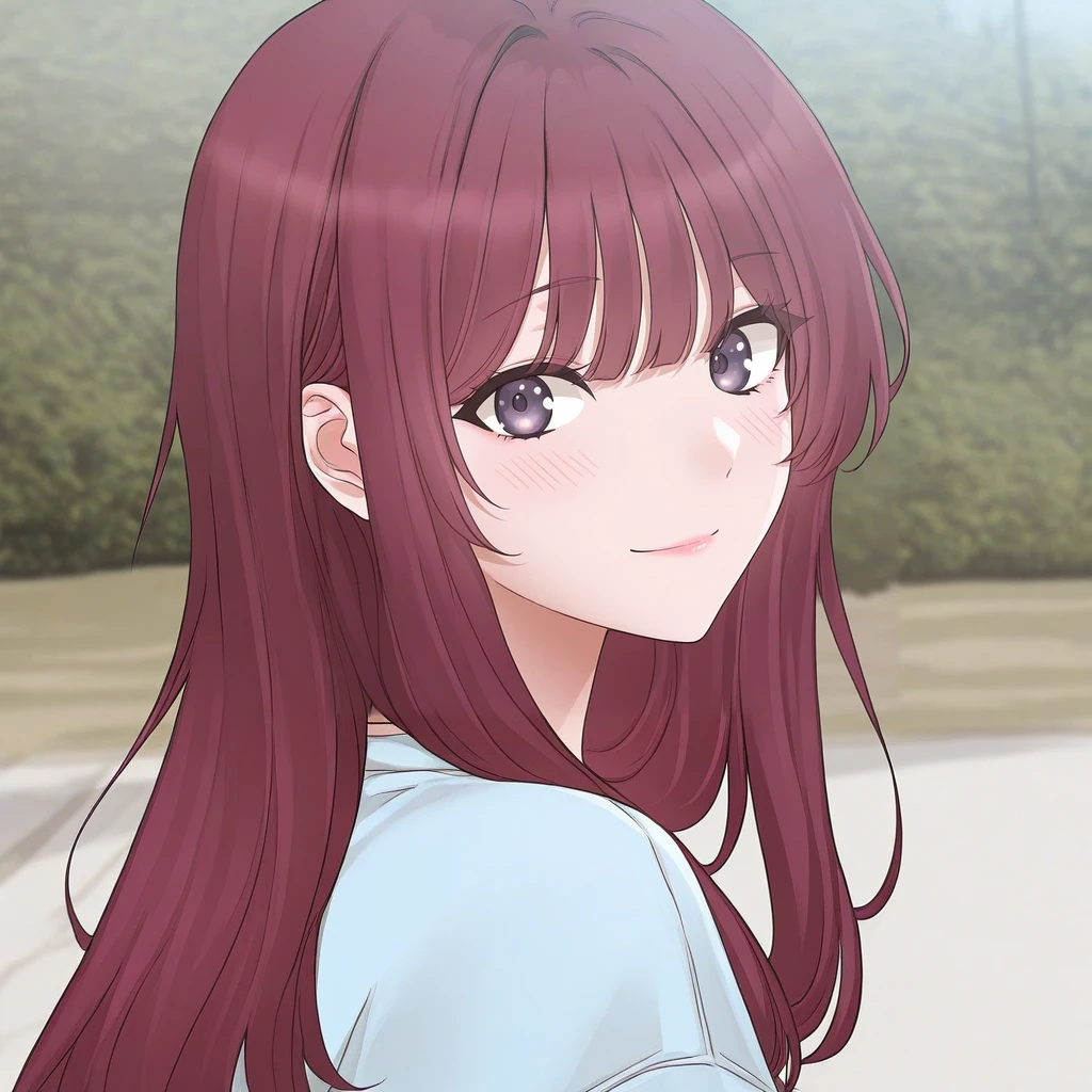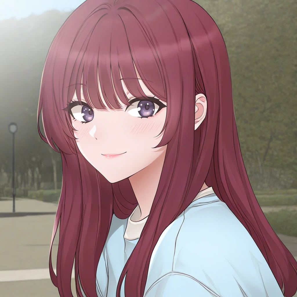 eun-hee-yoo_circle, 1girl, long hair, bangs, brown hair, red hair, purple eyes