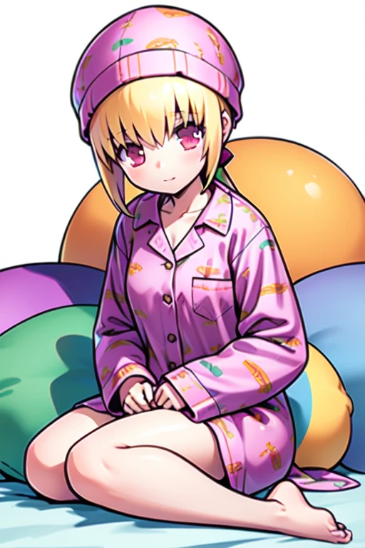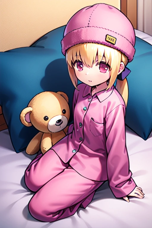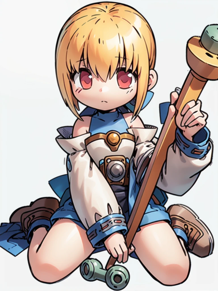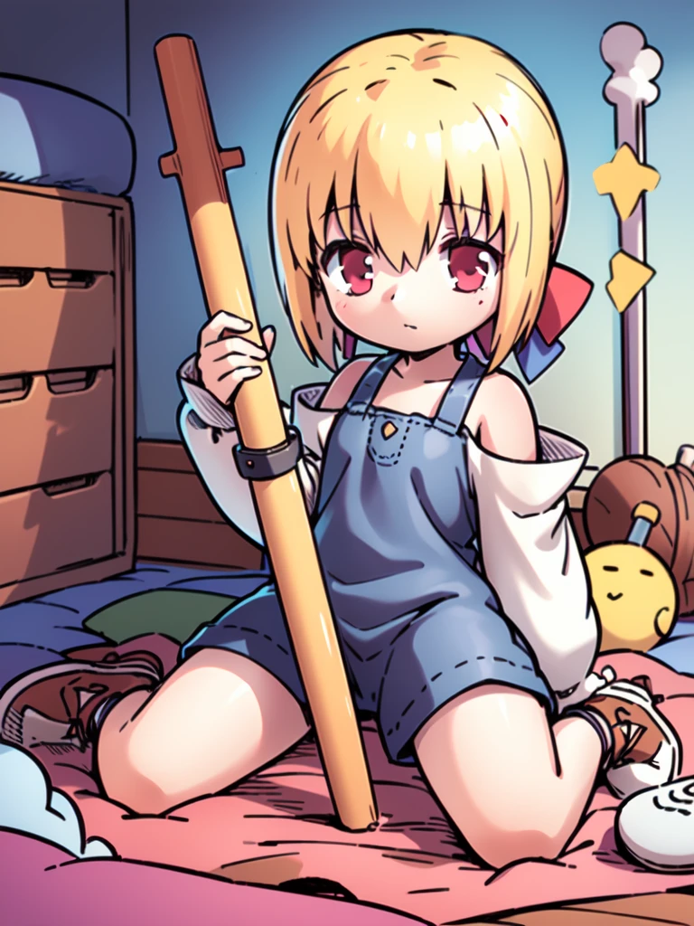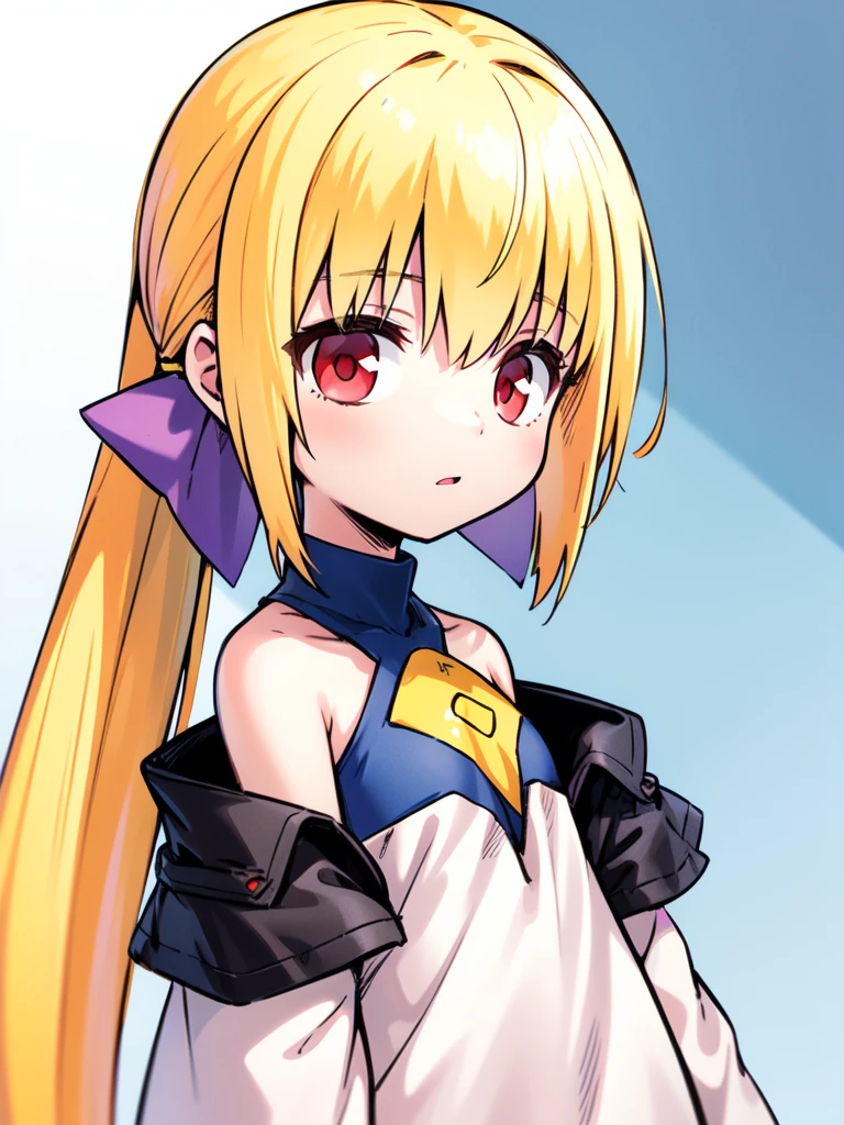 Linear_Cannon, 1girl, solo, red eyes, blonde hair, very long hair, low ponytail, hair bow,