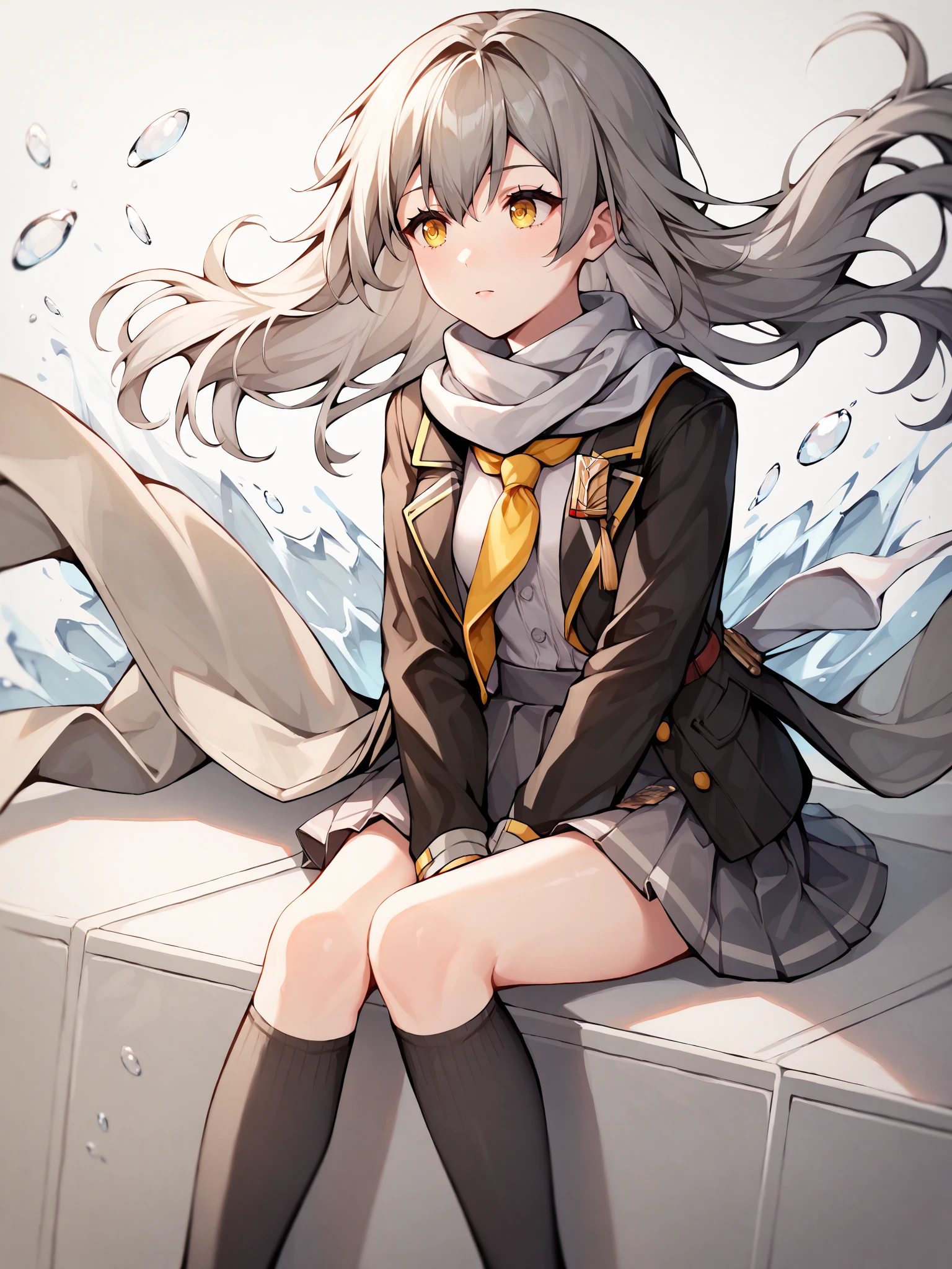 stelle,long gray hair,yellow eyes,xing costume,