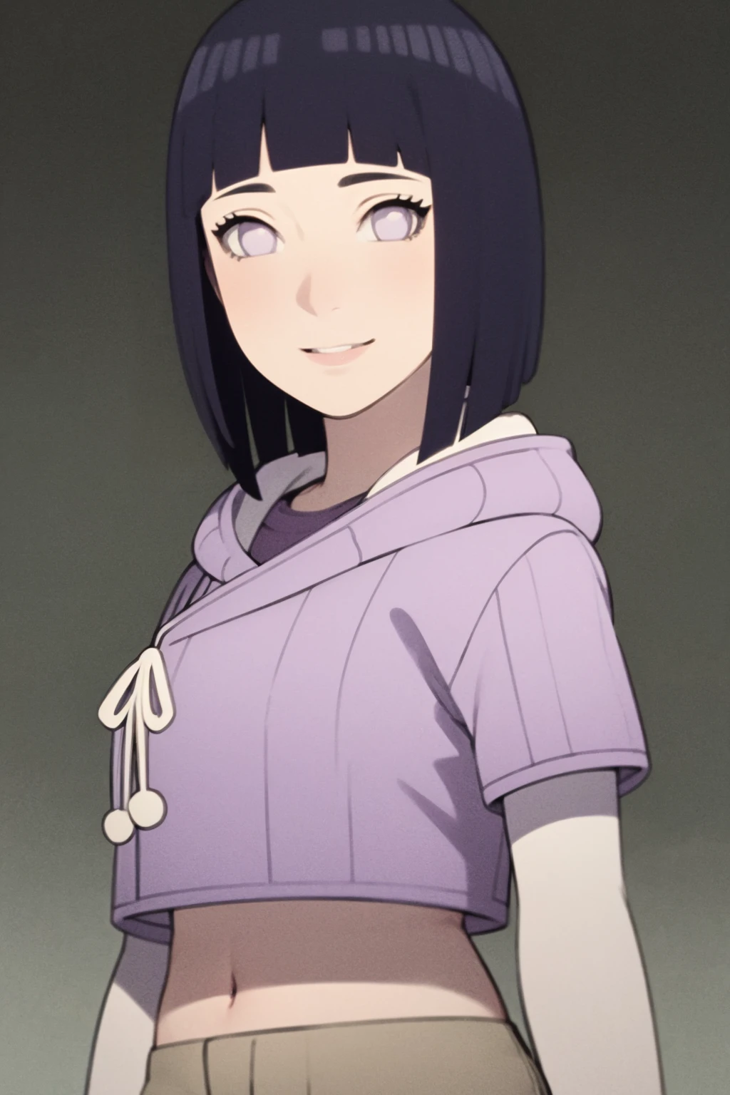 Boruto prompts : 1girl, mature, milf, hinata_boru, bangs, black hair, short hair, hood down, hoodie, layered sleeves, brown shorts, toeless boots