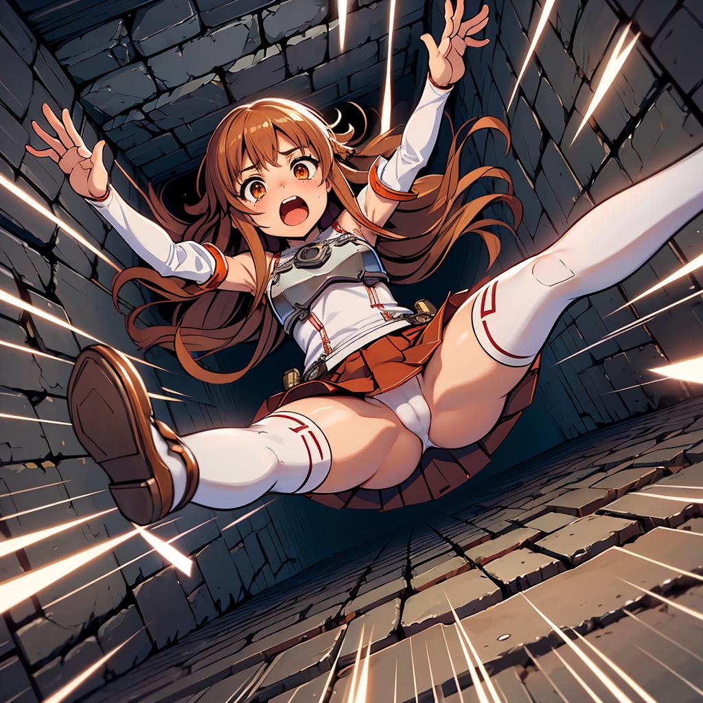 I've created a Lora that captures the moment a favorite character gets caught in a dungeon pitfall. While Stable Diffusion has a plethora of dungeon themes, crafting the specific moment before falling into a trap has been challenging. This Lora focuses on two scenarios: