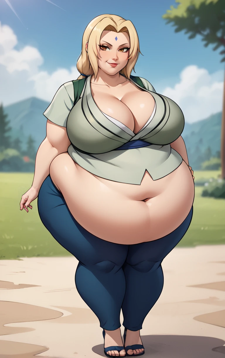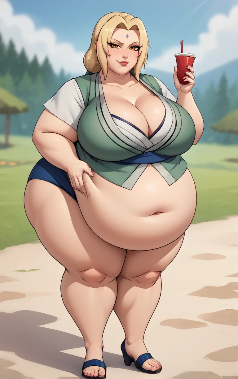 1girl, large breasts, furry female, blue eyes, brown hair, fat, animal ears, navel, tail, boots, body fur, big belly, short hair