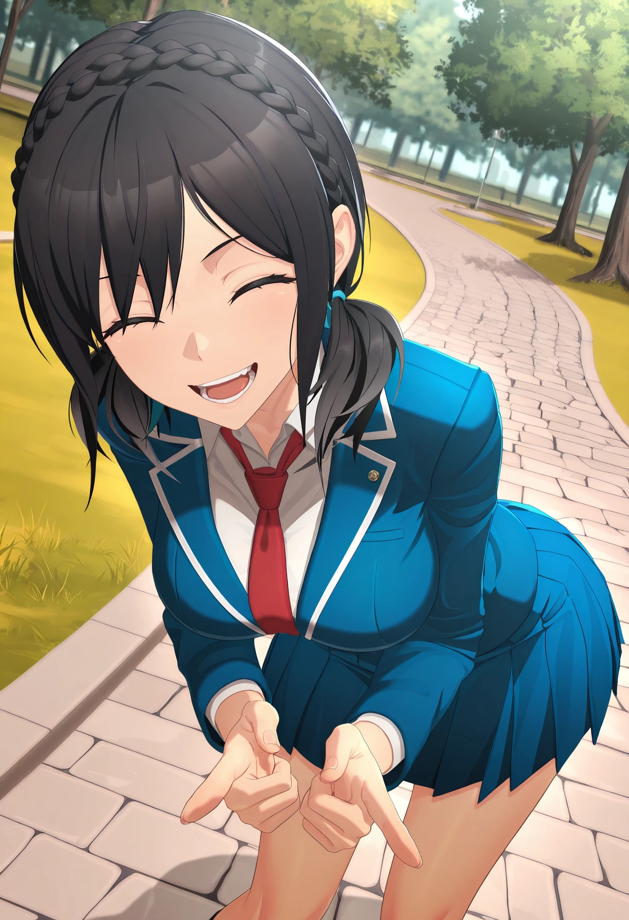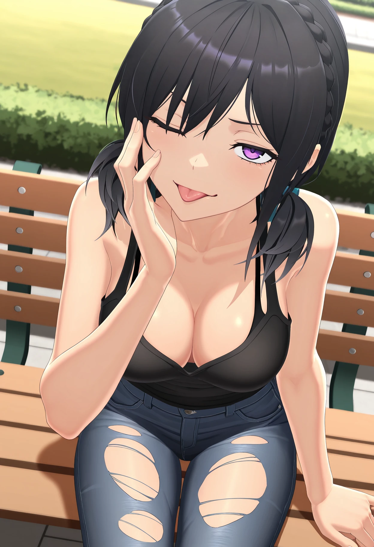 KJOmitsuki, black hair, purple eyes, short twintails, braid,