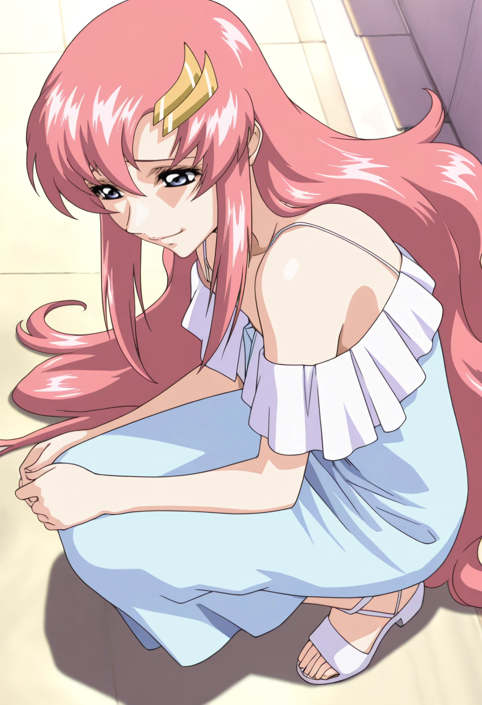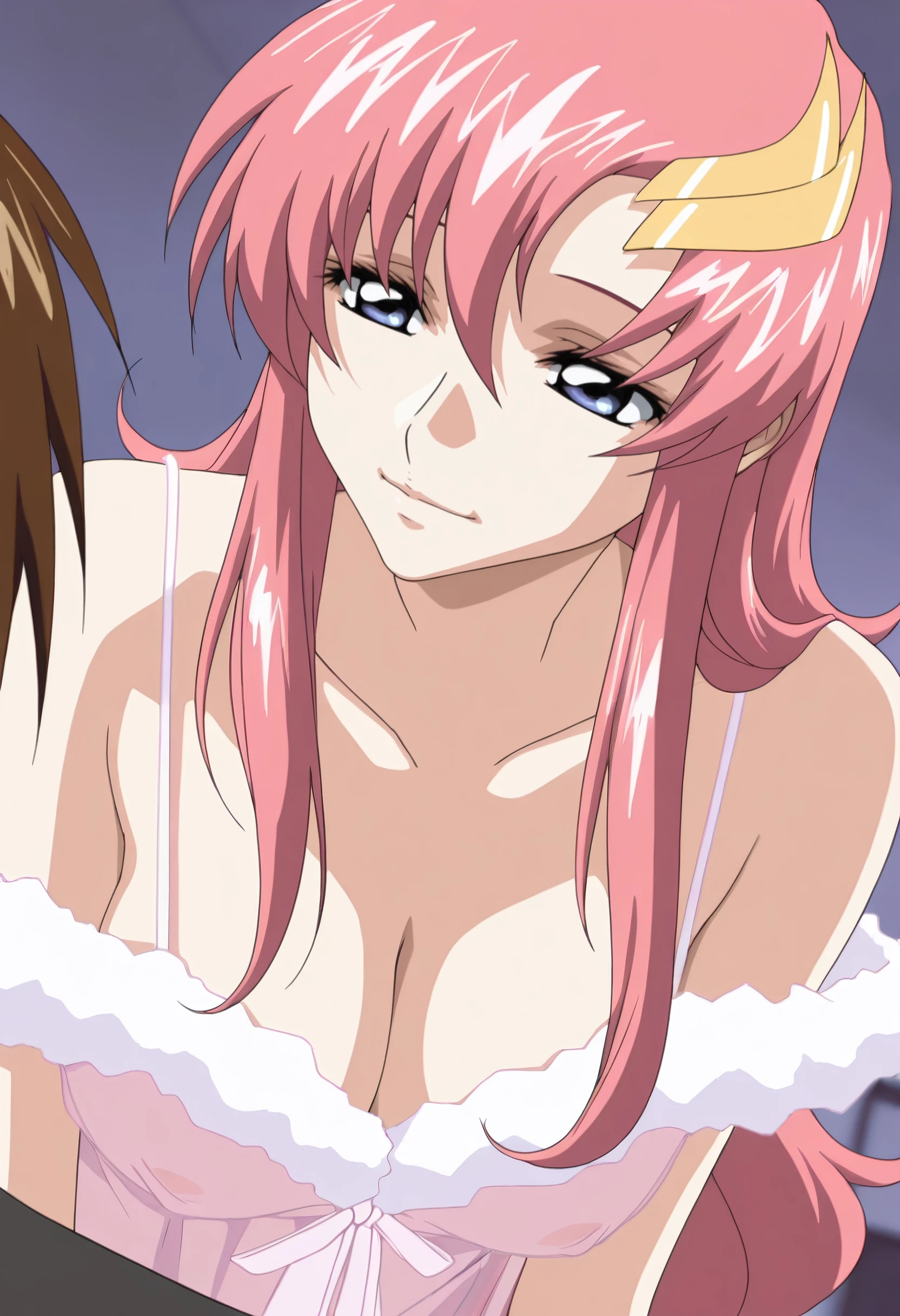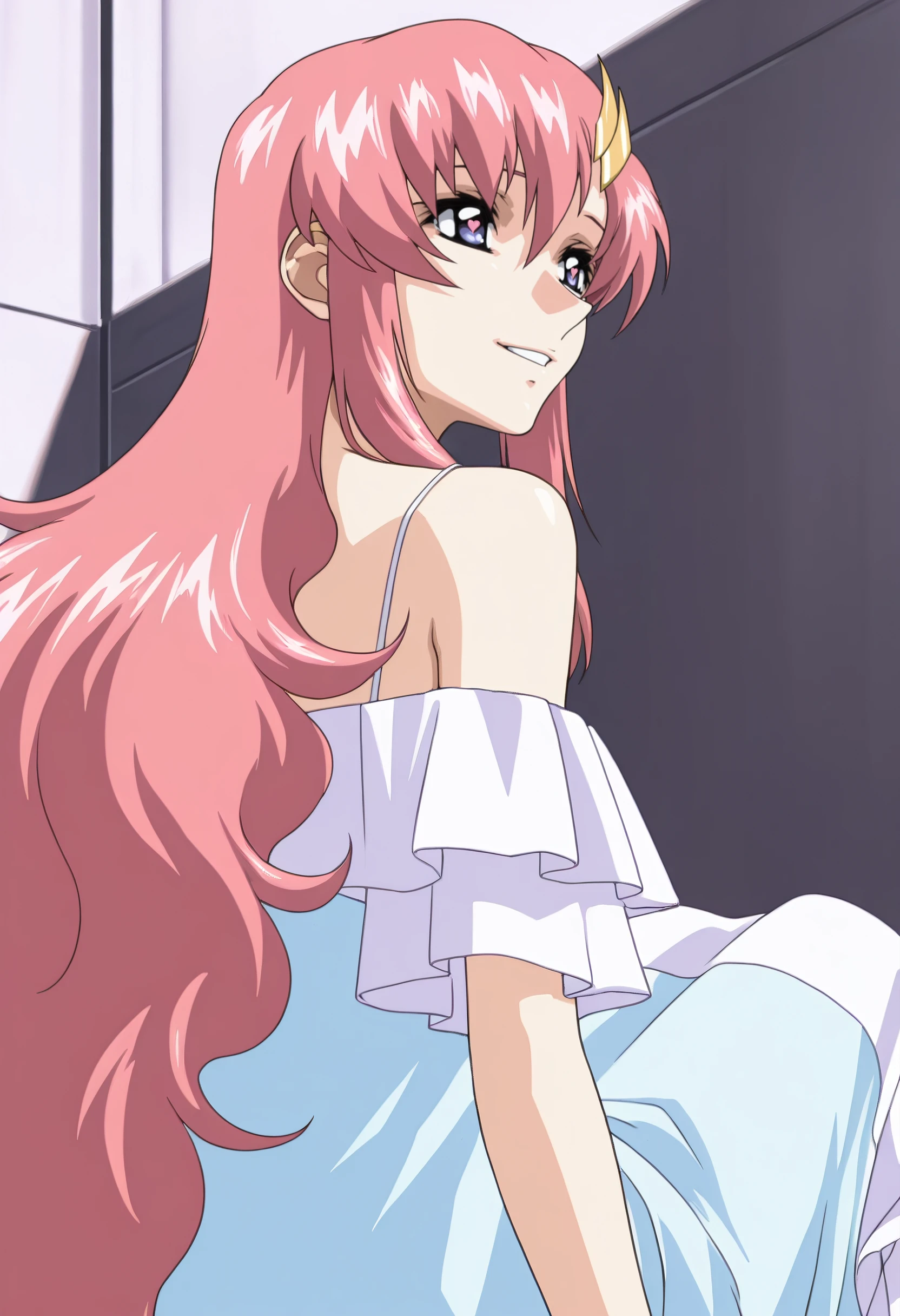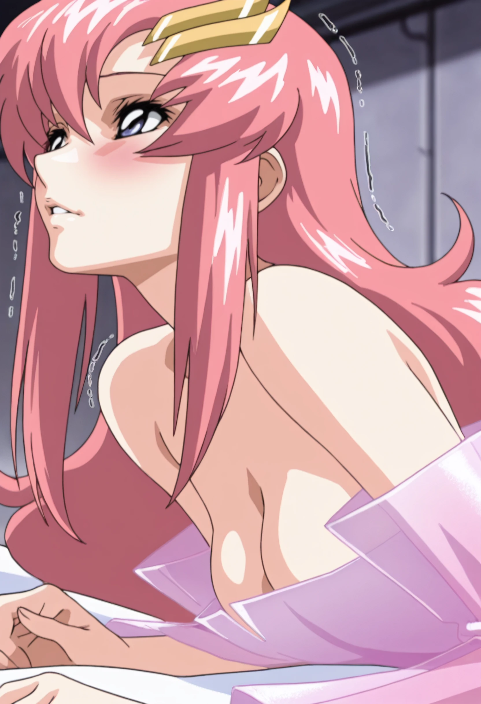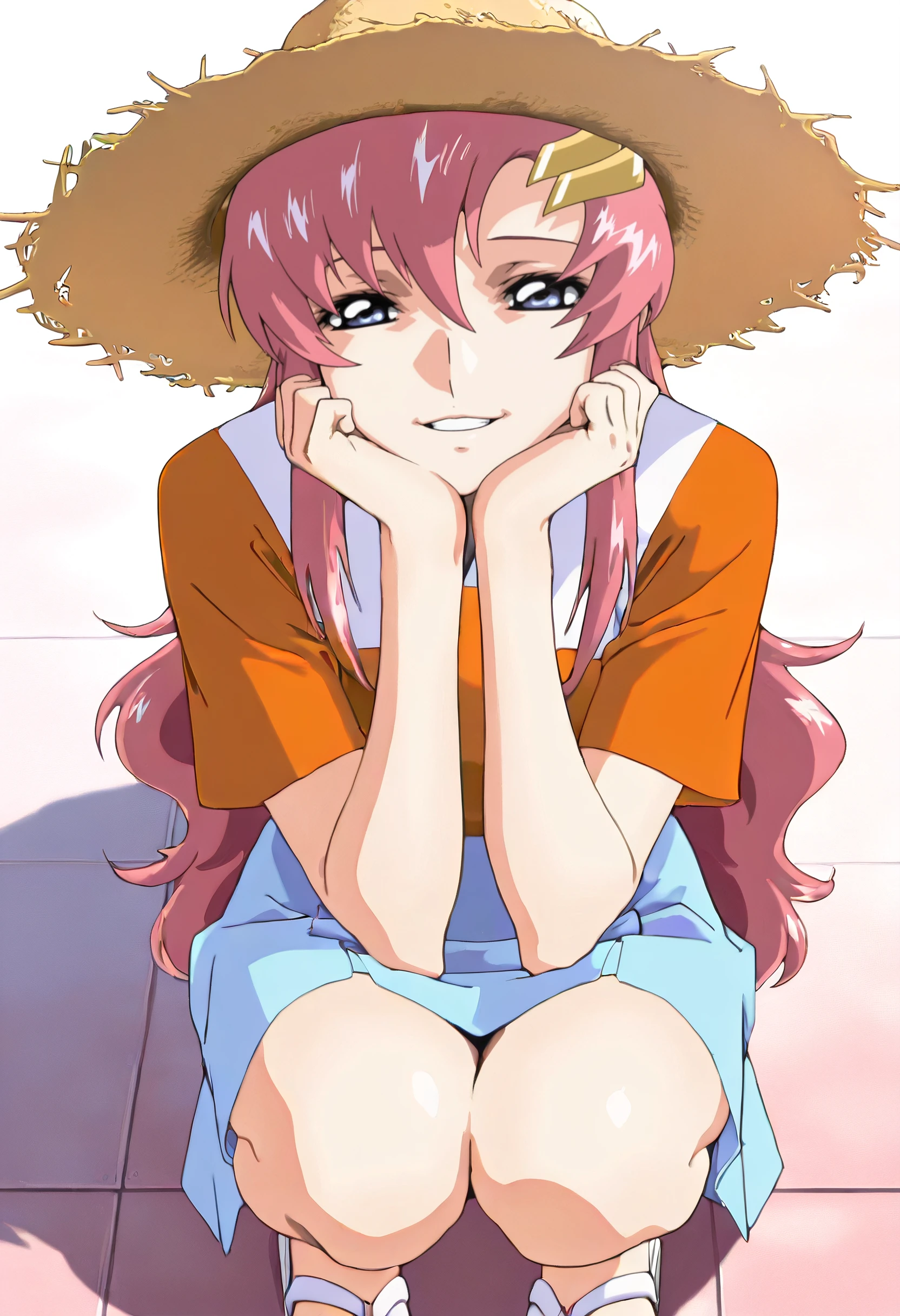 GSDLacus, long hair, blue eyes, pink hair, hair ornament, hair between eyes,