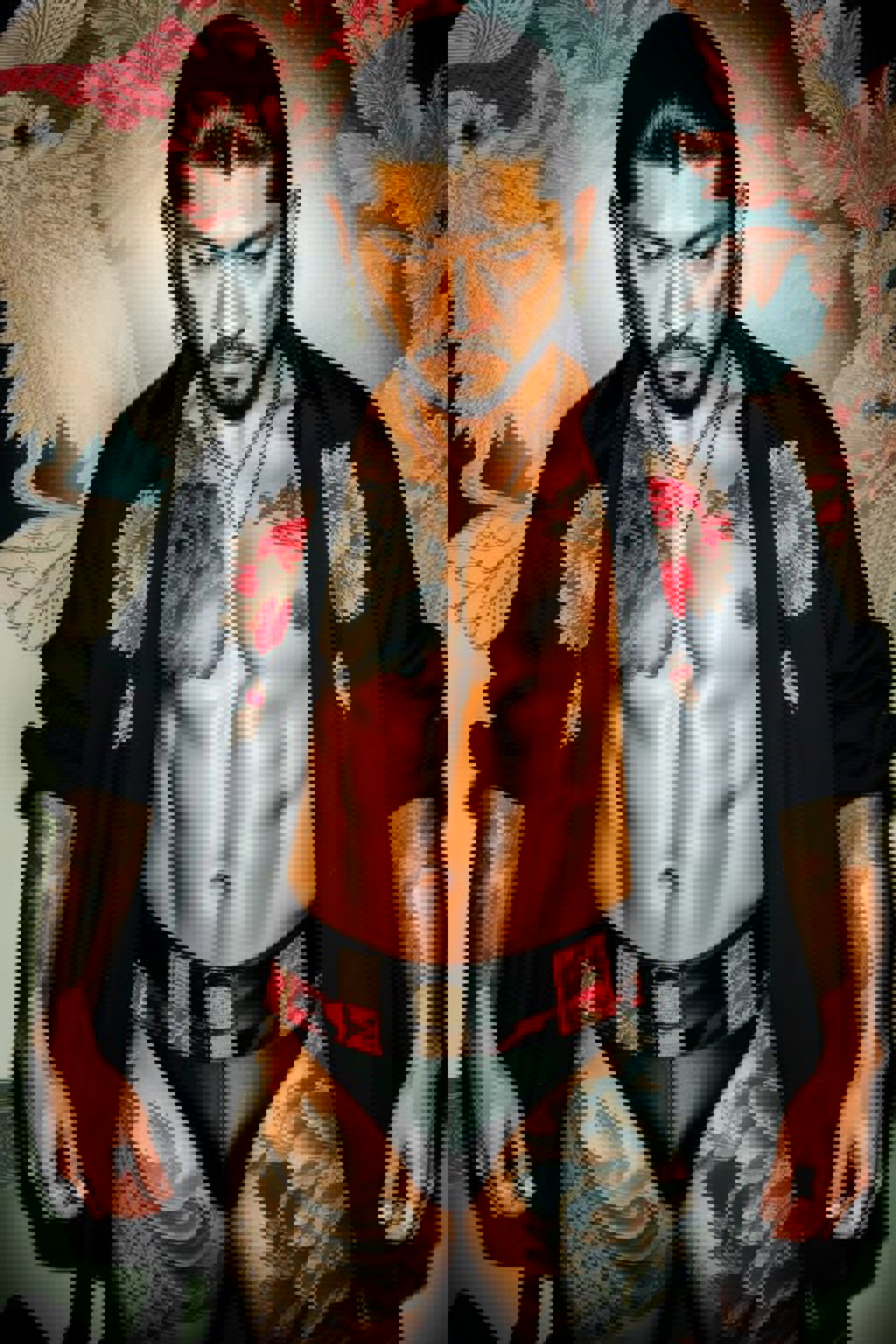 This tattoo design is a mix of traditional Japanese and Western styles, and the facial patterns may be limited.