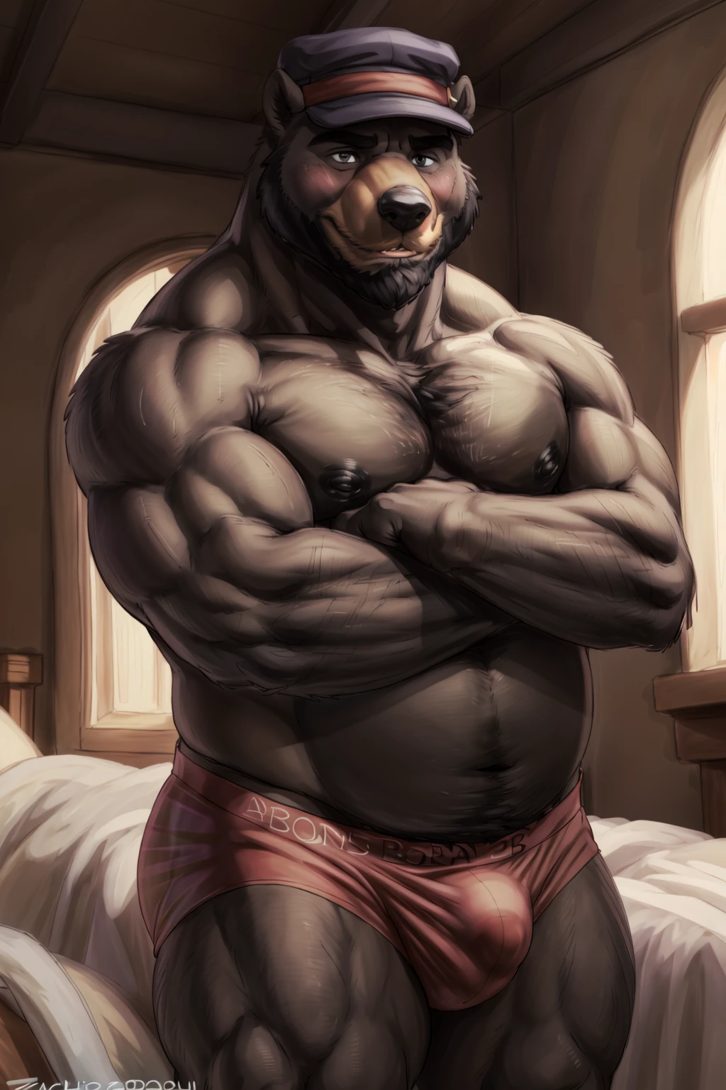 Reinforcement Prompts: "black fur, bara, plump, beard"