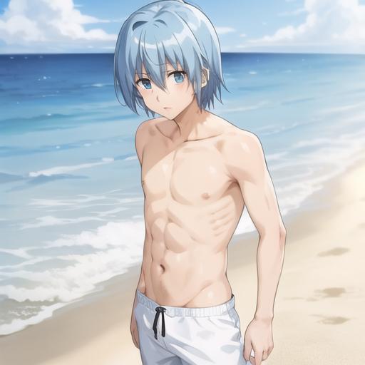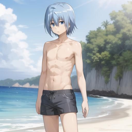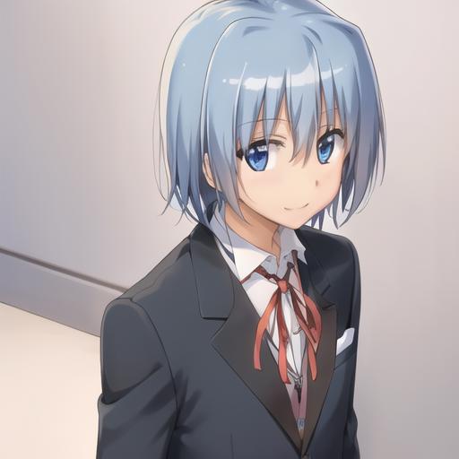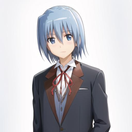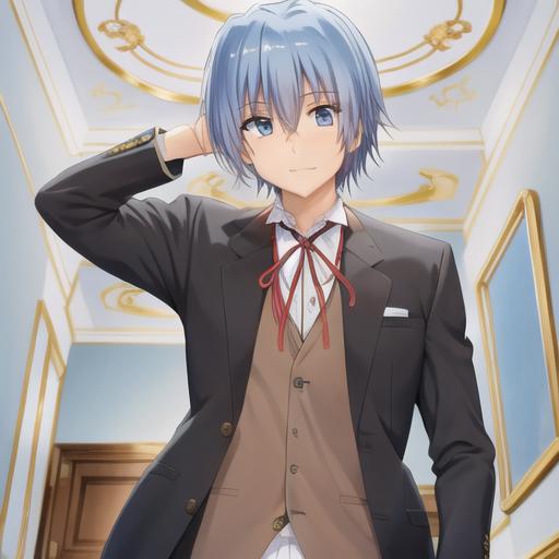 Trigger prompt: hayate ayasaki, short hair, blue eyes, blue hair