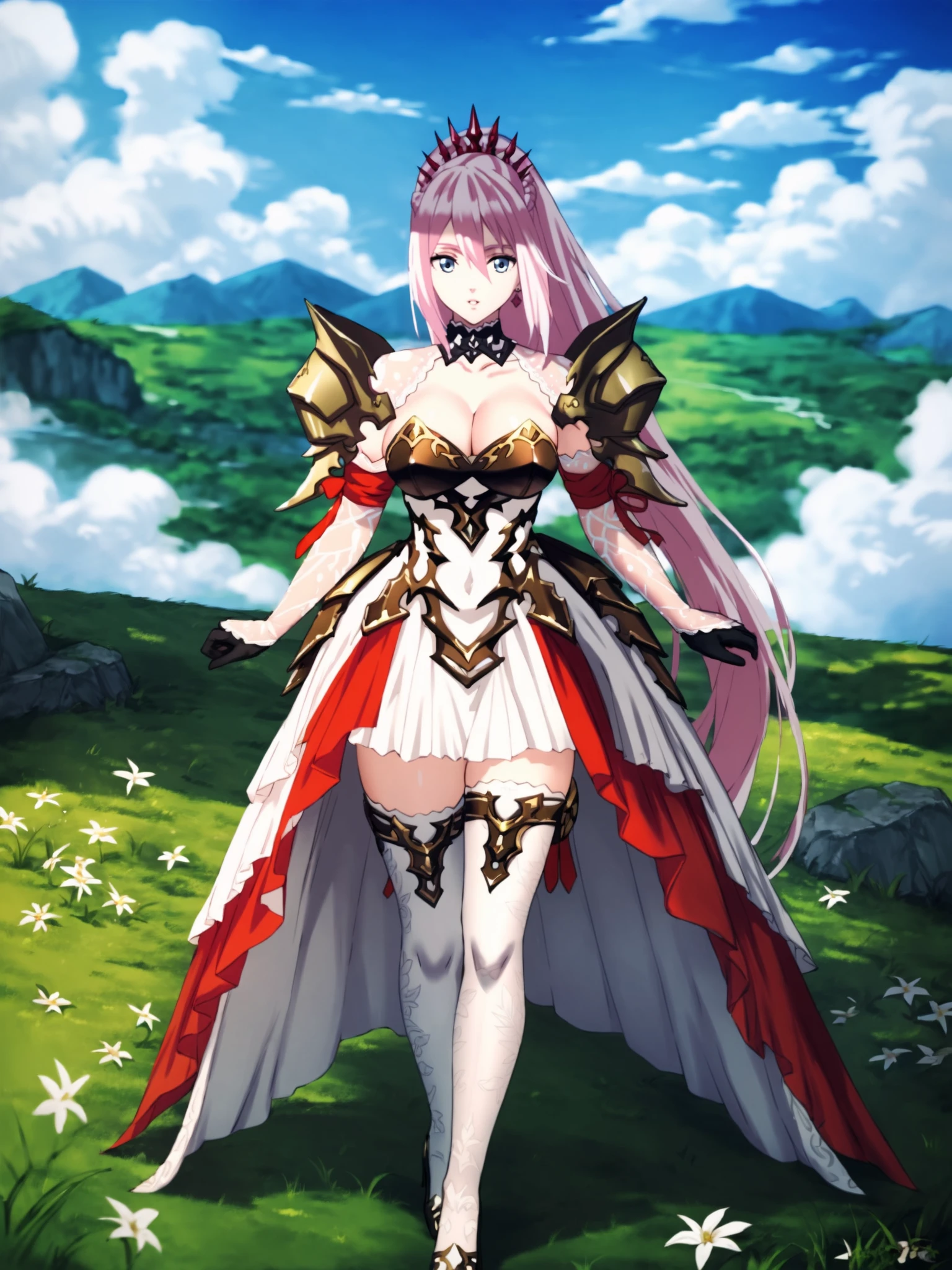3_shionne_01b_ronoaydress, pale skin, (long hair), blue eyes, 1girl, white thighhighs,print thighhighs, thighhighs,bangs