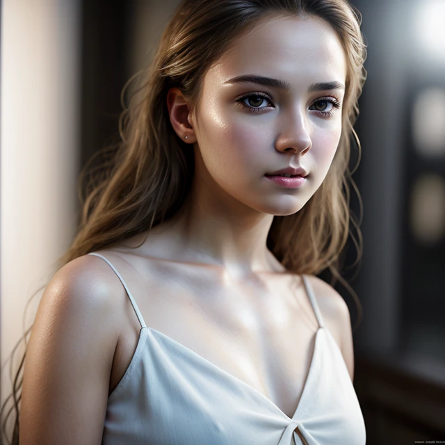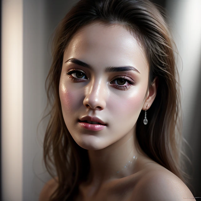 The model creates a Rim glow glossy lighting style. Studio lighting.
