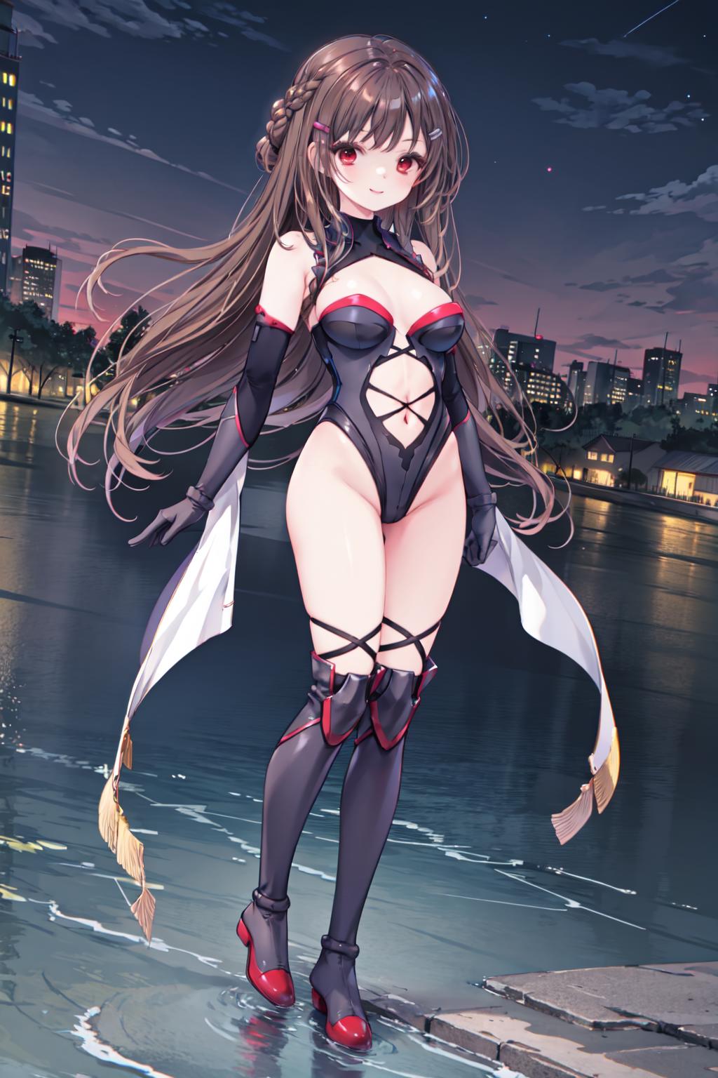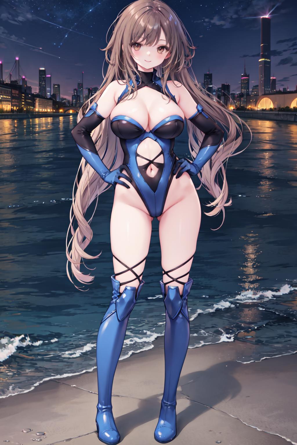 推荐权重0.5~0.7,推荐512x768生成然后高清修复。这是音符社10女儿少女之剑里角色们穿的投影紧身衣。你可以尝试使用 blue/yellow/purple highleg leotard 作为换色的方法,但是因为我没有在训练集里分开它们所以大概不是很好用。默认颜色会是红色。可能会因为你使用角色lora而变色。