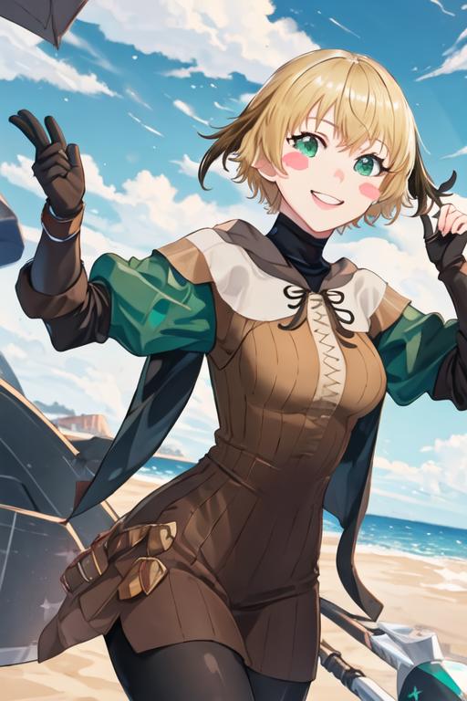 The trigger word is gareth_fgo, and the recommended tags are best quality, masterpiece, highres, solo, {gareth_fgo:1.15}, blonde_hair, short_hair, green_eyes, smile, open_mouth, blush_stickers, breasts.