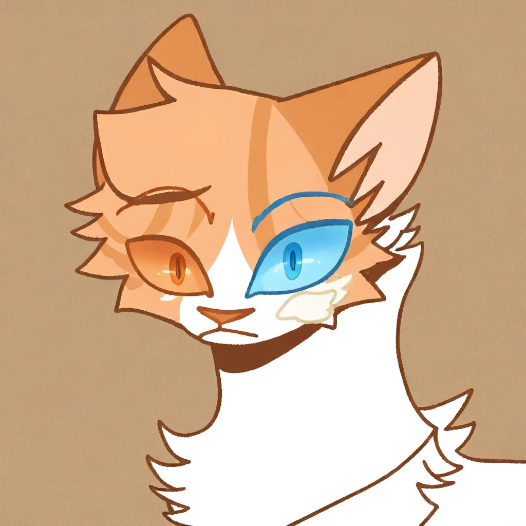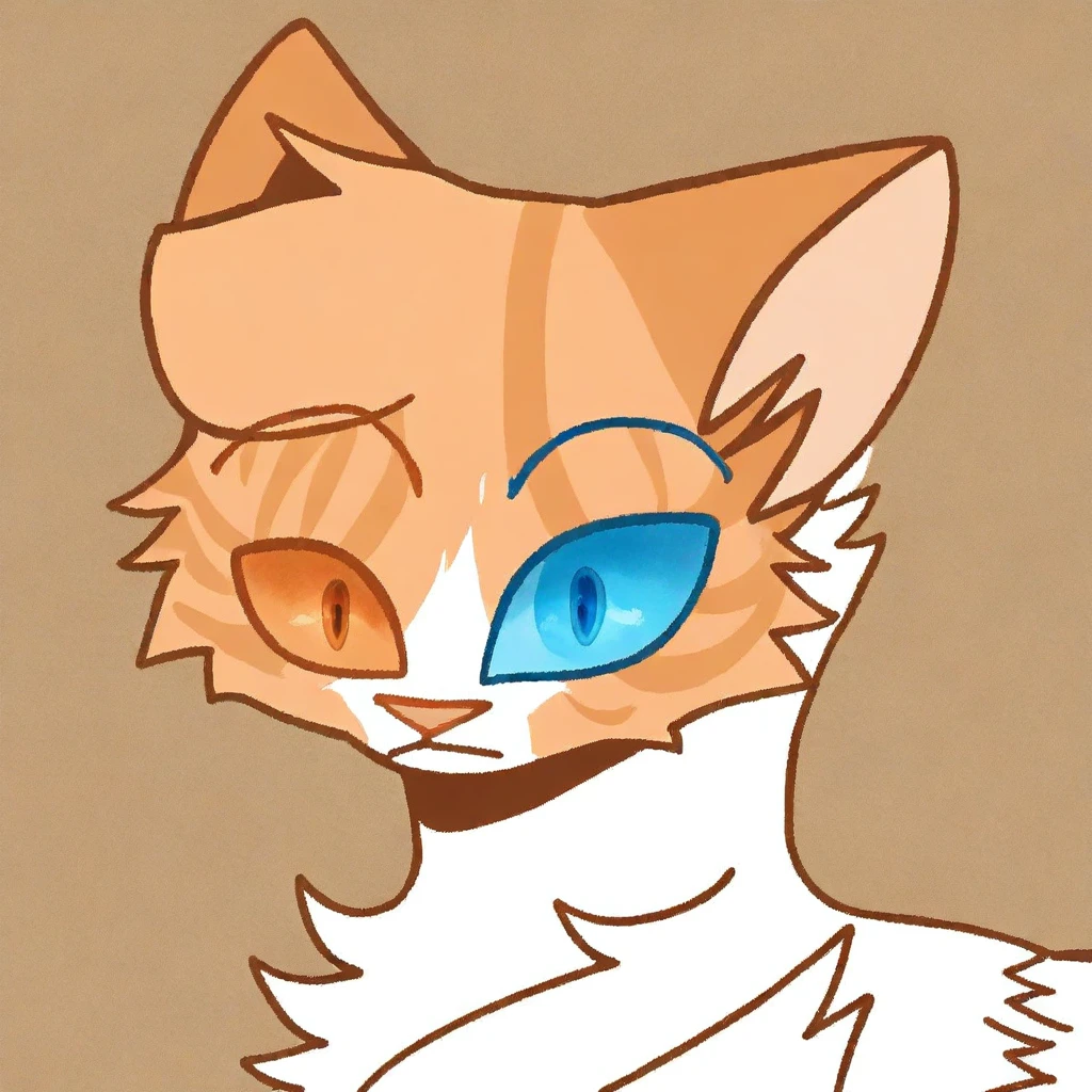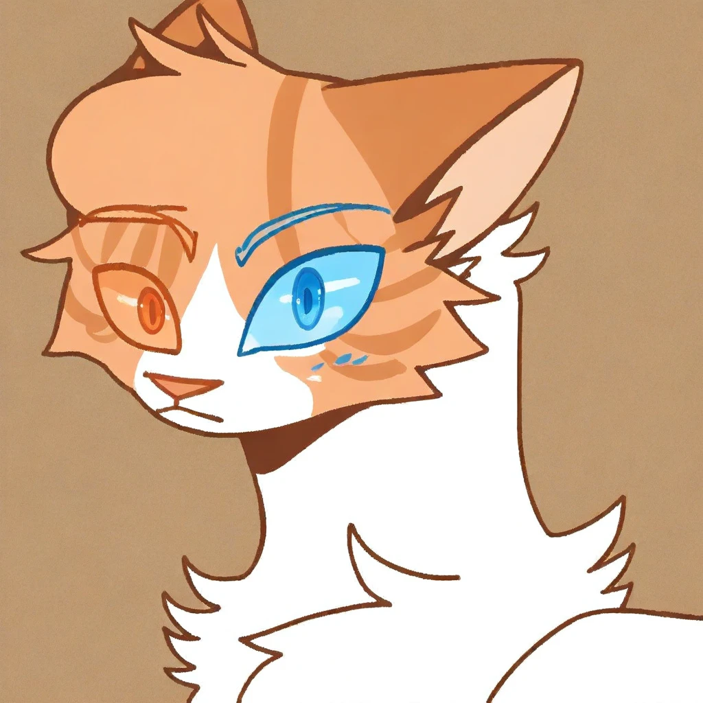 rosemoon, 1boy, male, male focus, male cat, cat, multicolored fur, two-tone fur, white fur, cream stripes, orange fur, heterochromia, blue eye, orange eye,
