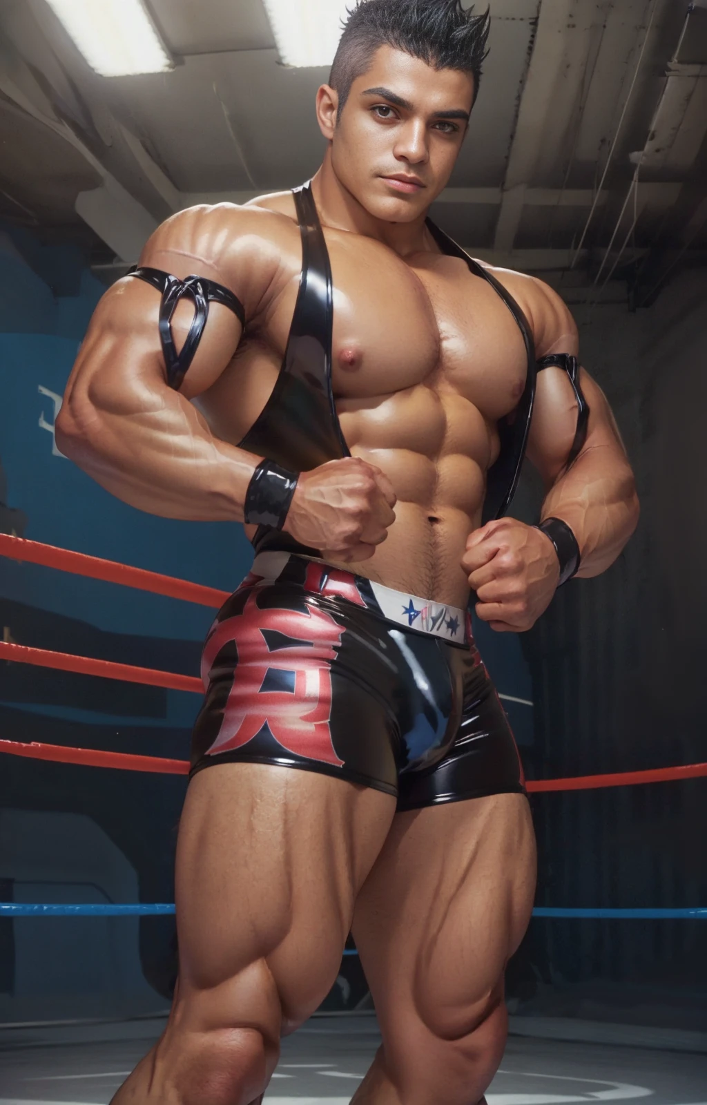 mexwrest, shorts, latino, short hair, tan skin, nipples,spiked hair, male underwear, 1boy,