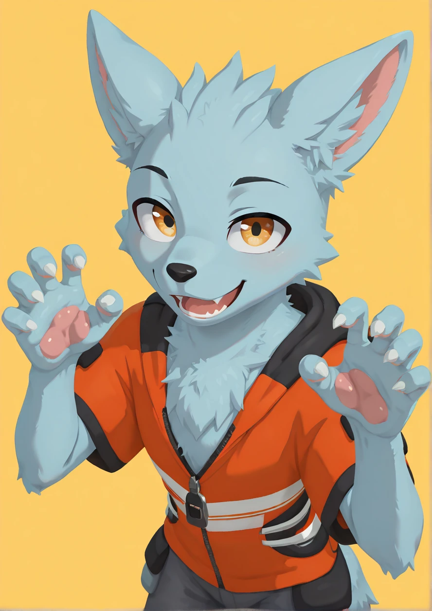 suguru, furry, furry male, light blue fur, orange hoodie, gold eyes,