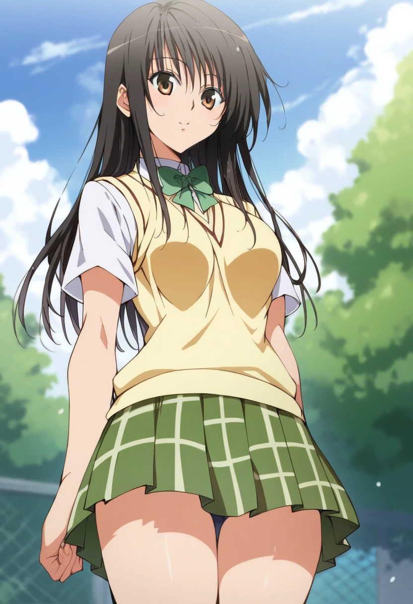 kotegawa_yui, long hair, black hair, breasts, school uniform, sweater vest, skirt
